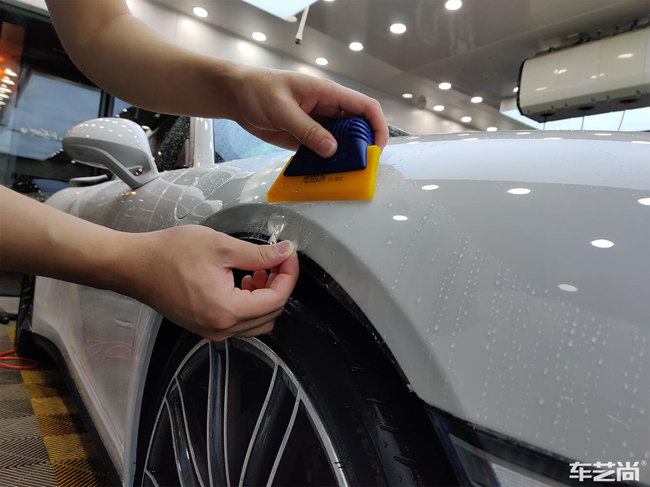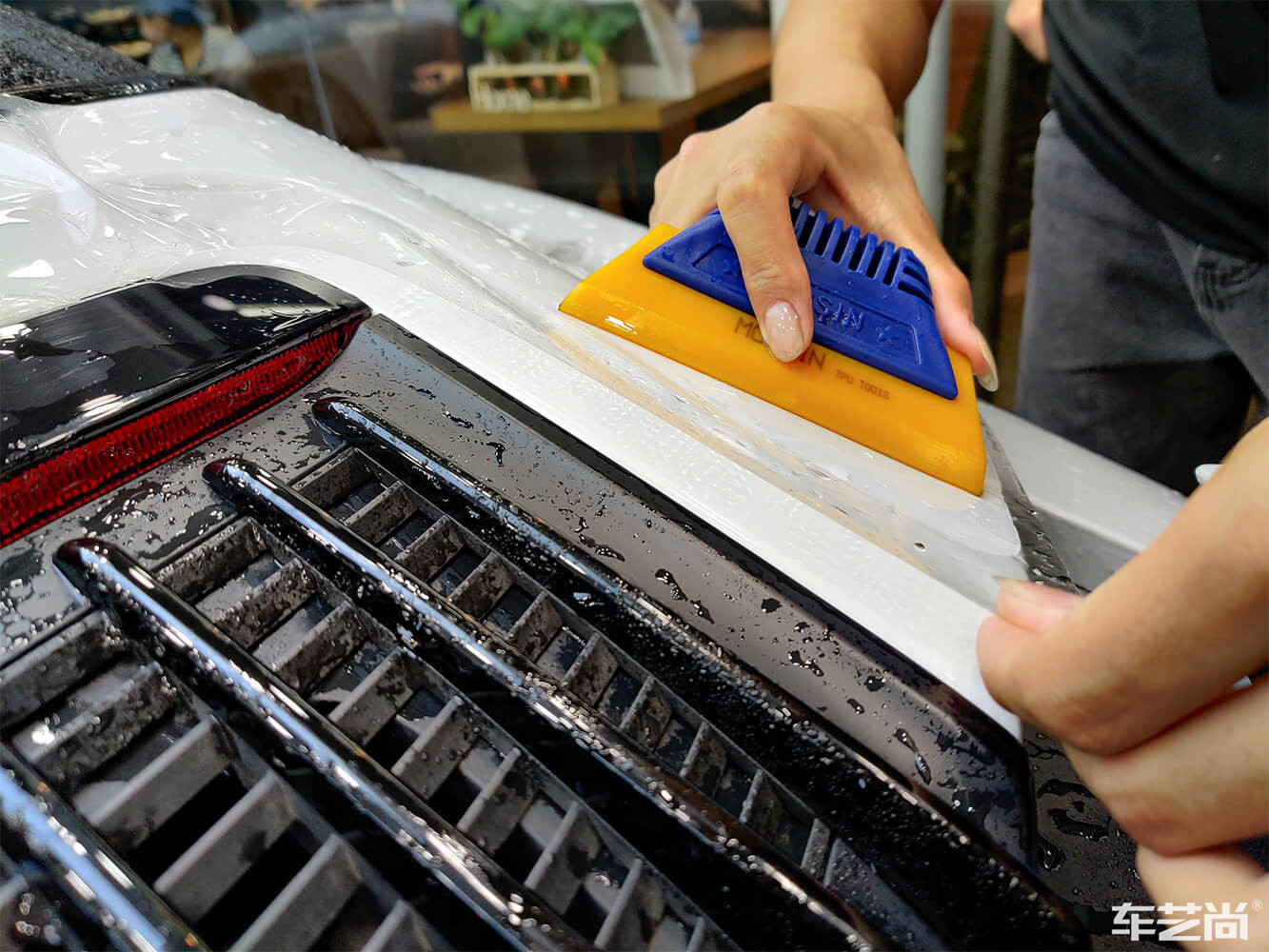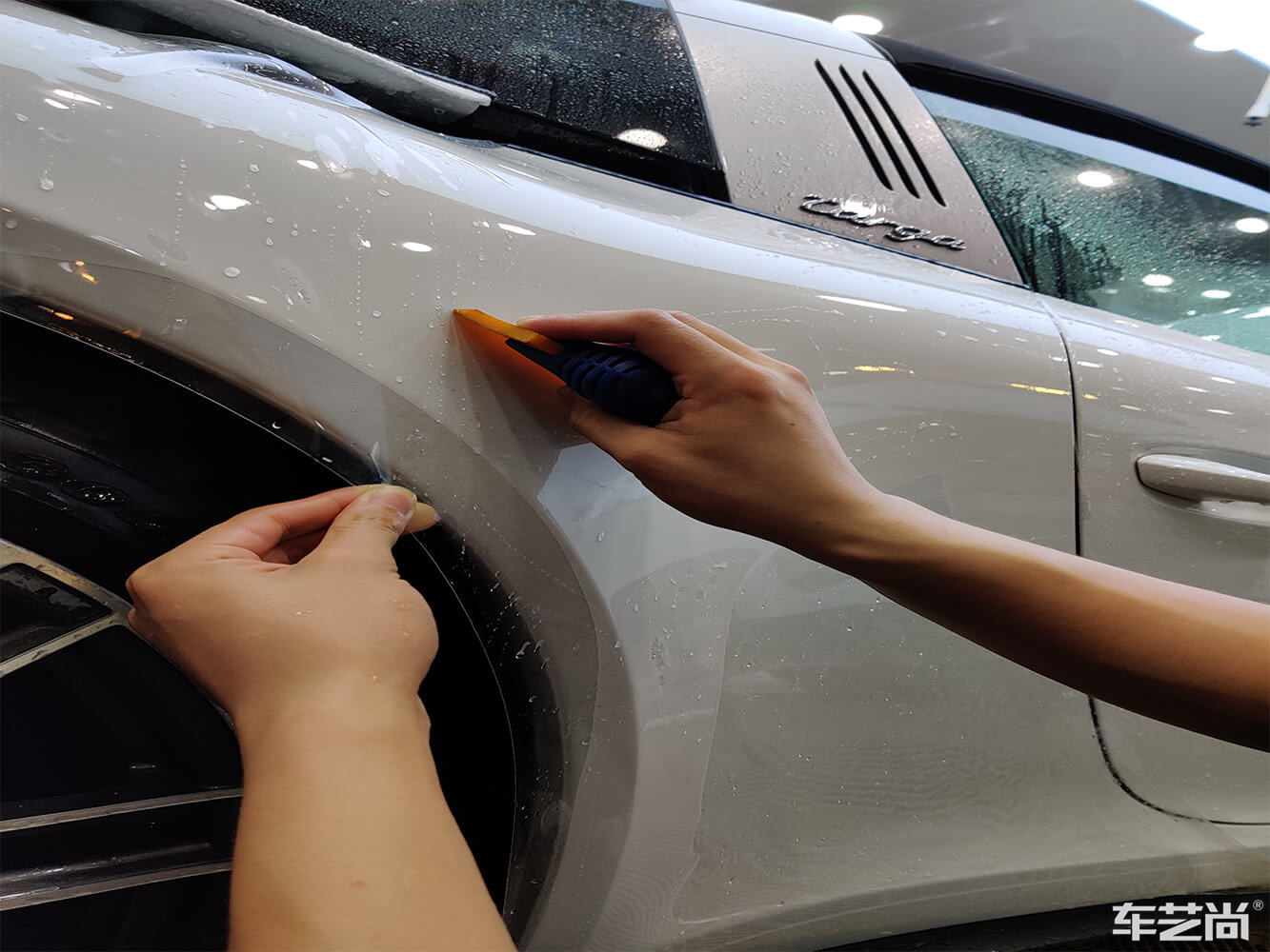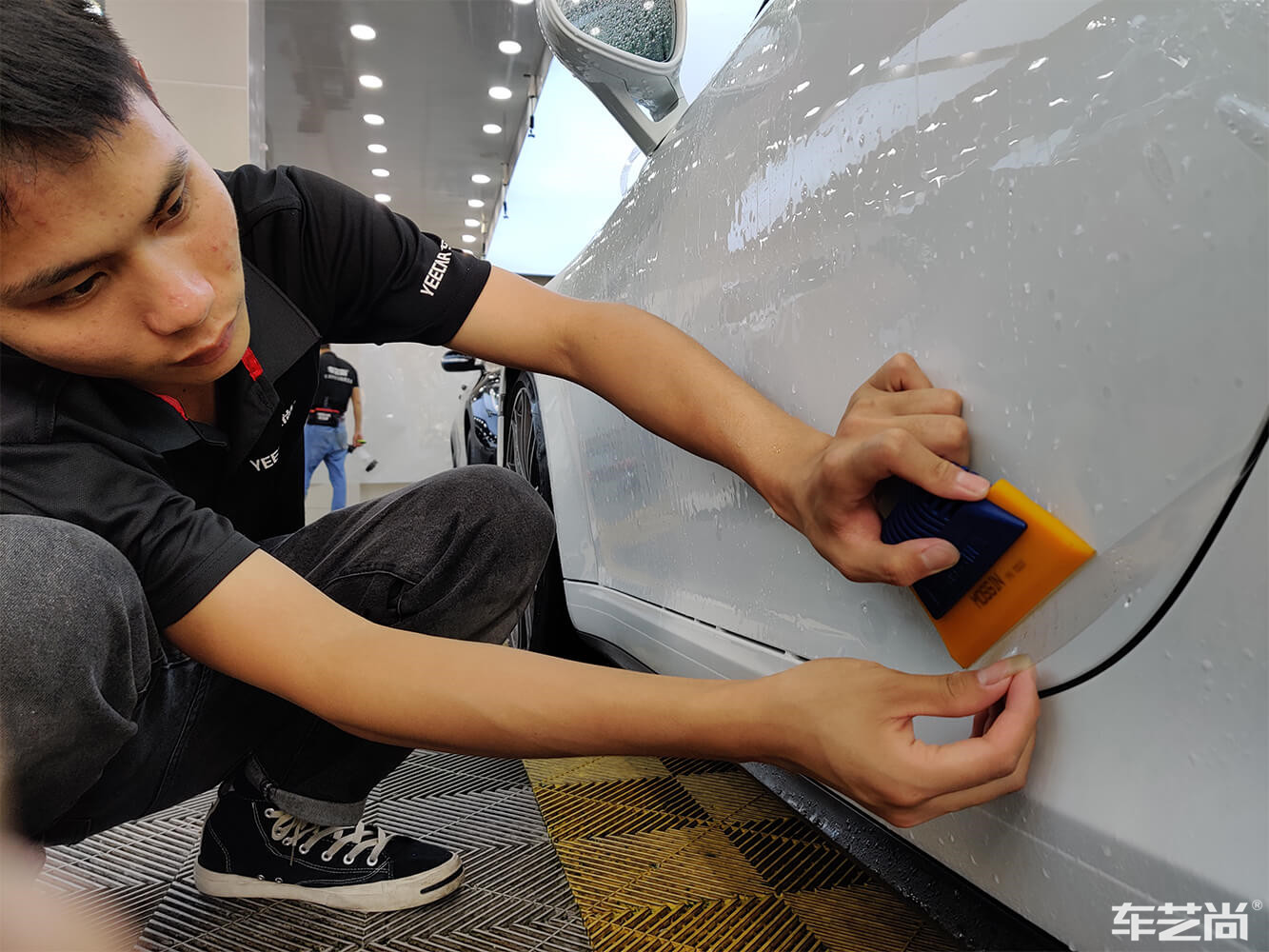 车艺尚拥有更精准的包边预留设计,电脑裁剪,匹配车身的每一个弧度,隐形车衣装贴过程中,不拆装不动刀无划痕。