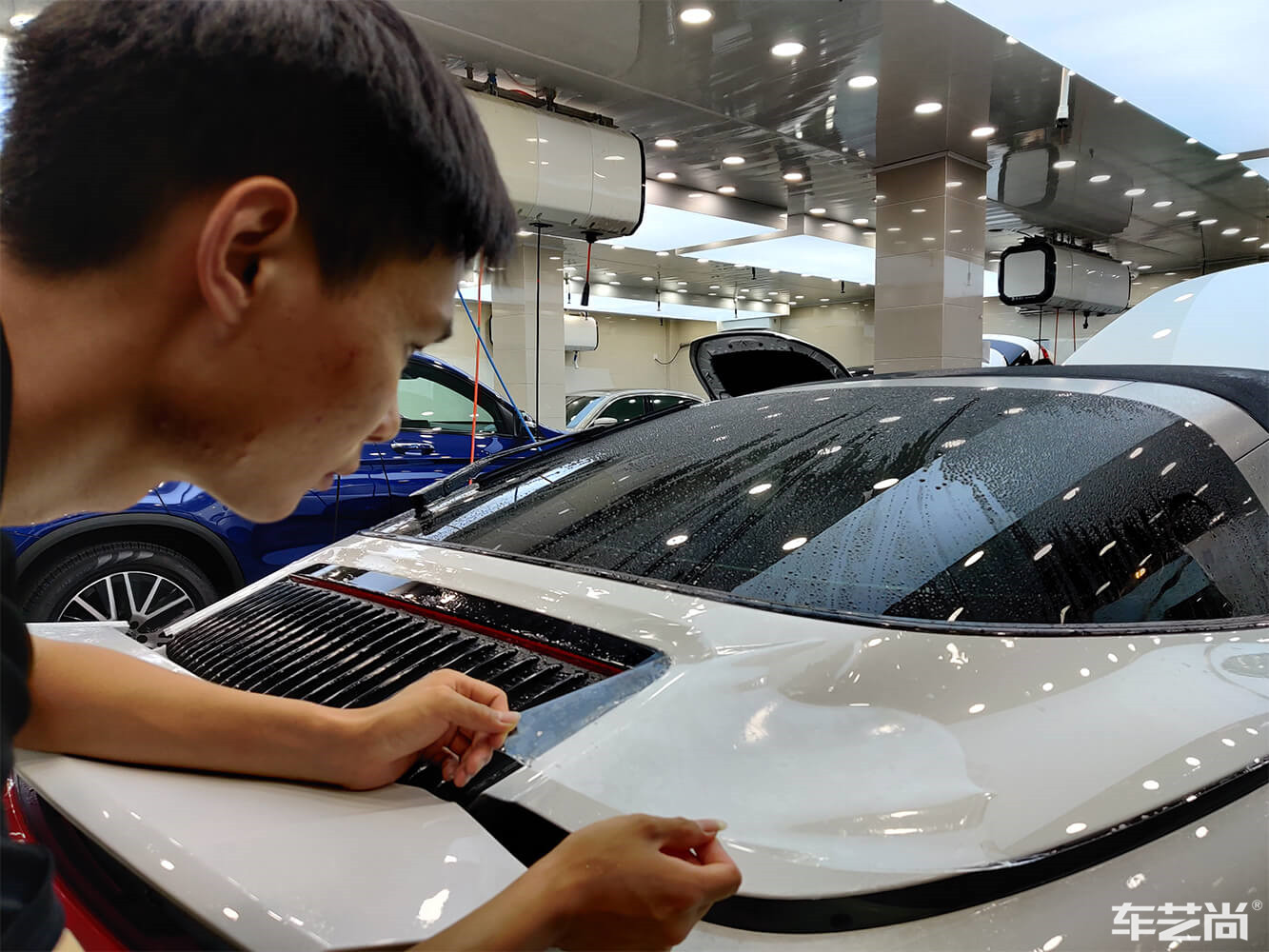 车艺尚汽车贴膜在隐形车衣施工前,会对车辆进行彻底的清洁,不放过任何一个缝隙死角,保持漆面的洁净,确保贴膜后无尘点。
