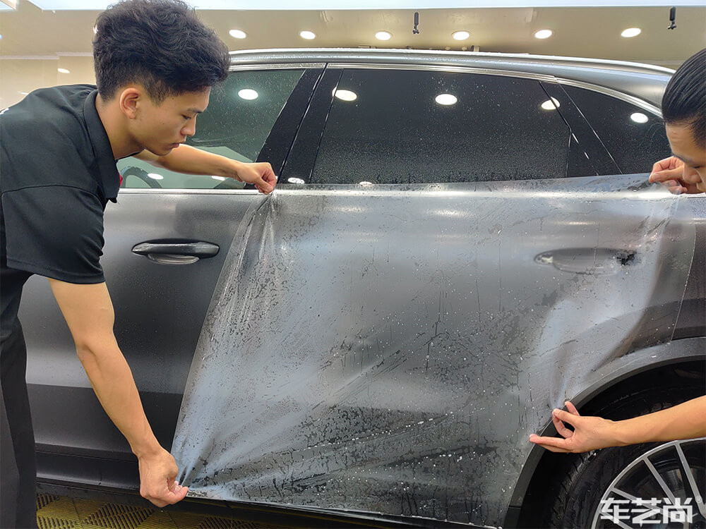 车艺尚拥有更精准的包边预留设计,电脑裁剪,匹配车身的每一个弧度,隐形车衣装贴过程中,不拆装不动刀无划痕。