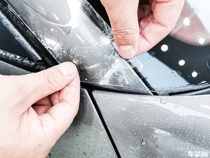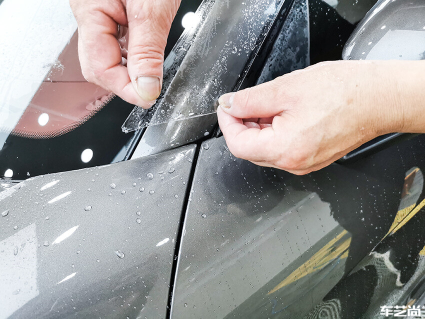 在车身边缘部位,车艺尚技师匠心的收边工作,可以达到隐形装贴的效果,还能避免后期翘边脱落等问题的发生,延长车衣的使用寿命。
