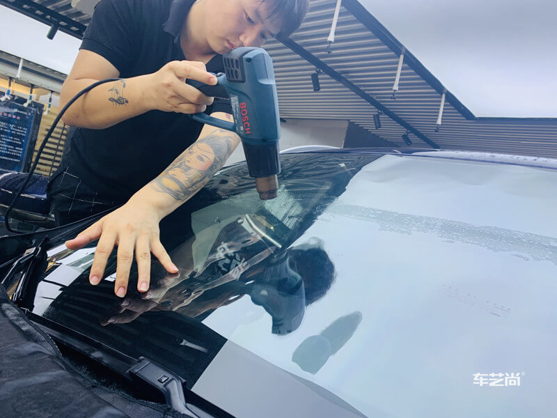 烘烤定型中,温度过高或过低都不行,这就既需要恒温的烤枪,又需要技师的手法,烘烤的距离、时长,都影响着膜的延展度。不专业的烘烤操作很容易烤伤车膜,甚至是爱车的玻璃。