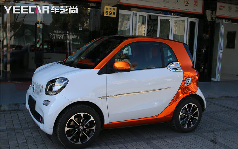 ● 接下来我们一起欣赏车艺尚Smart局部电镀橙施工效果。。。