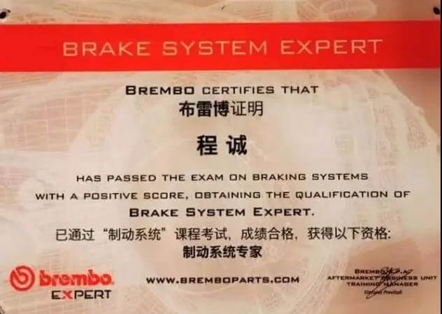 布雷博官方授权及认证证书
