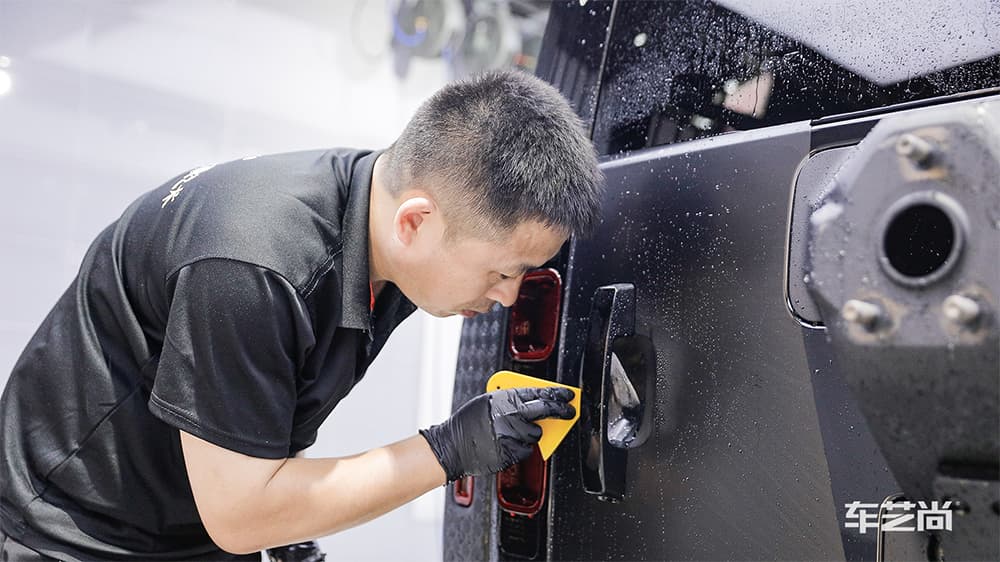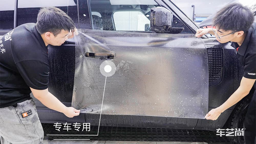 路虎卫士黑色施工威固漆面保护膜流程及效果展示