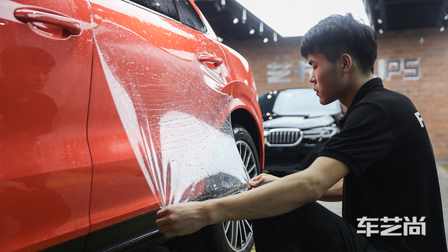 保时捷卡宴橙色施工罗利普斯隐形车衣流程及效果展示