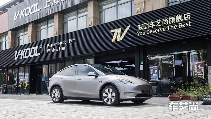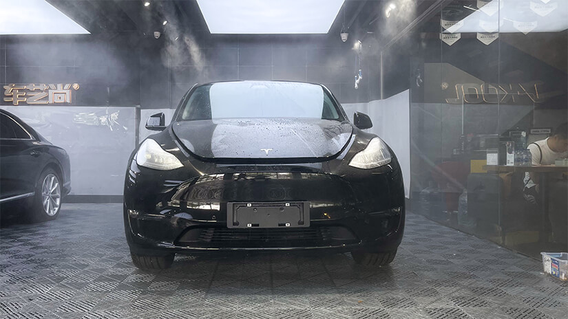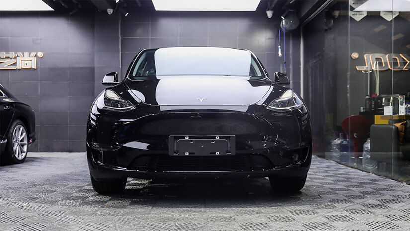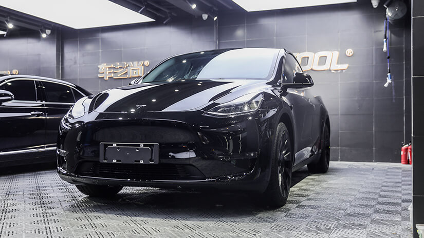 特斯拉model y黑色施工改色膜+玻璃膜案例