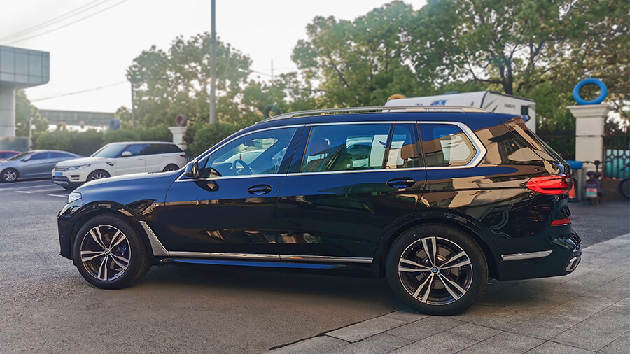 宝马X7黑色施工威固玻璃膜车衣流程及效果展示