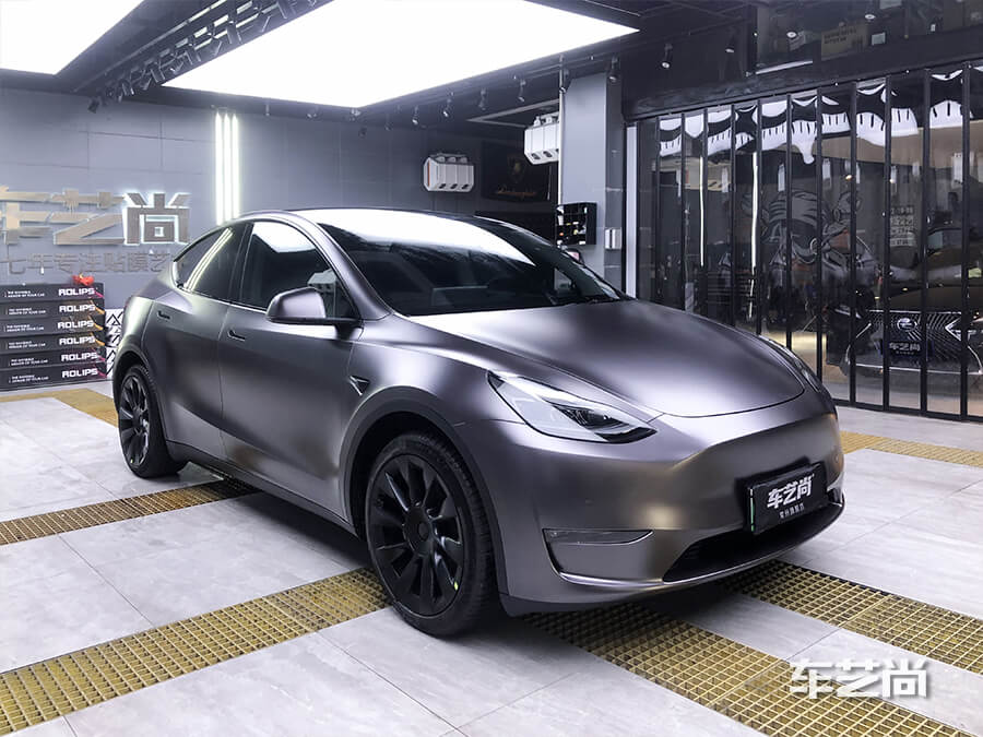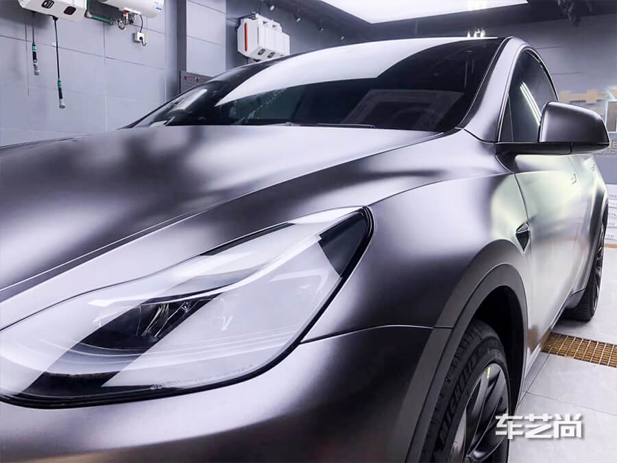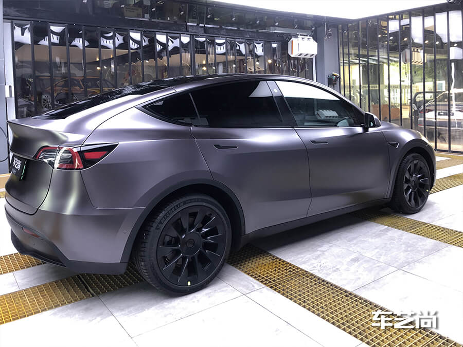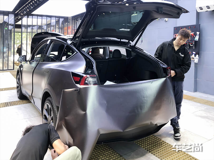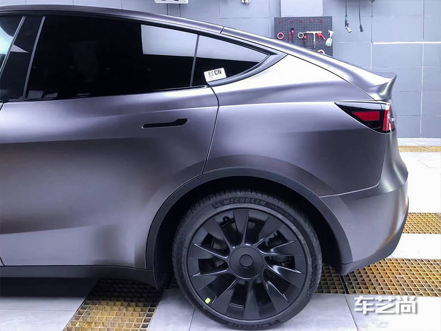 特斯拉Y黑色施工AX深邃灰车身改色膜案例