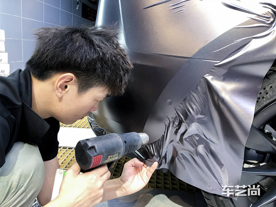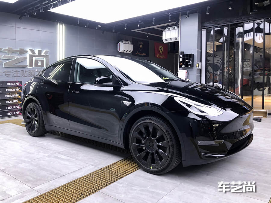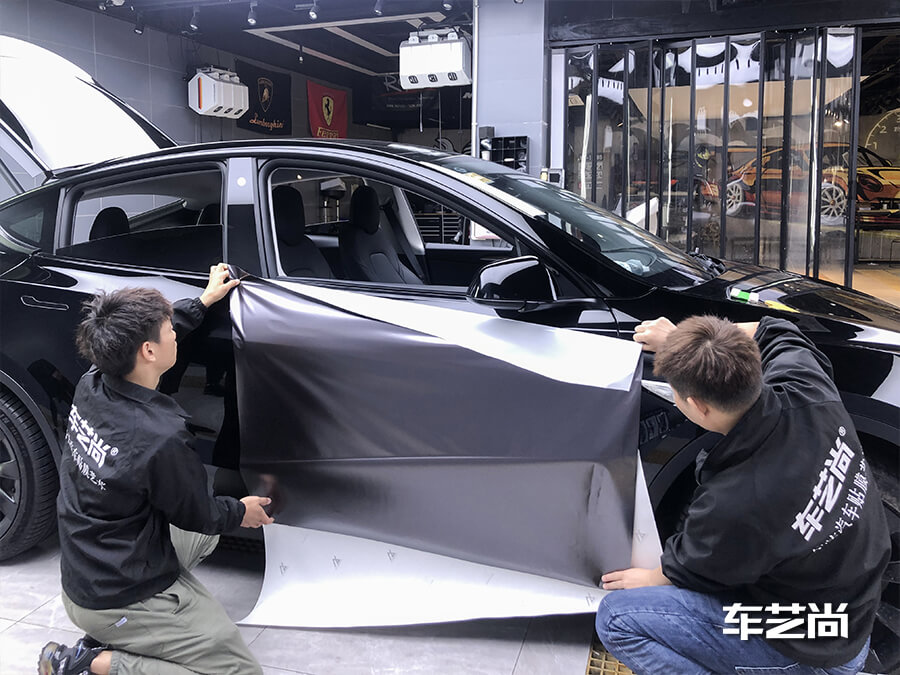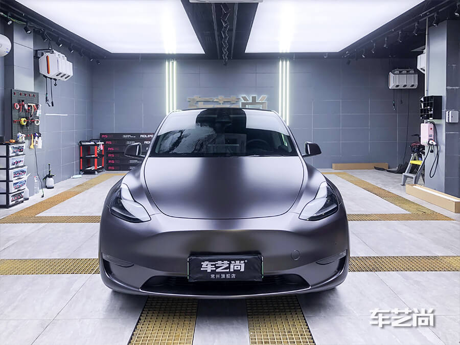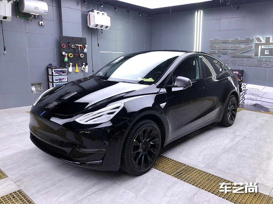 特斯拉Y黑色施工AX深邃灰车身改色膜案例