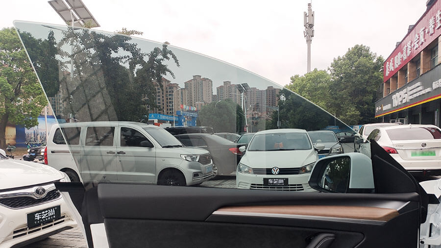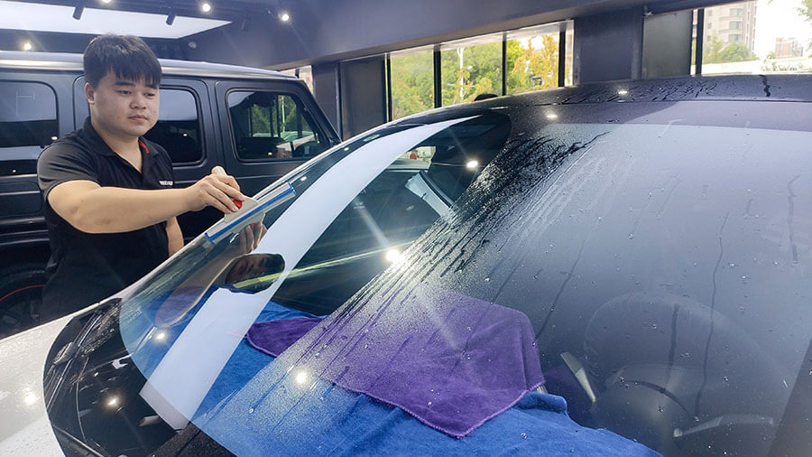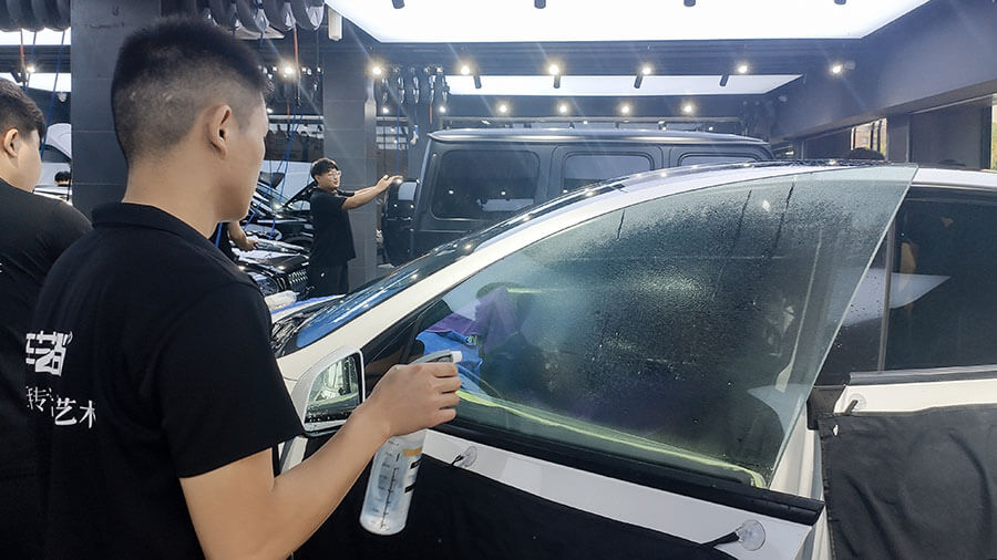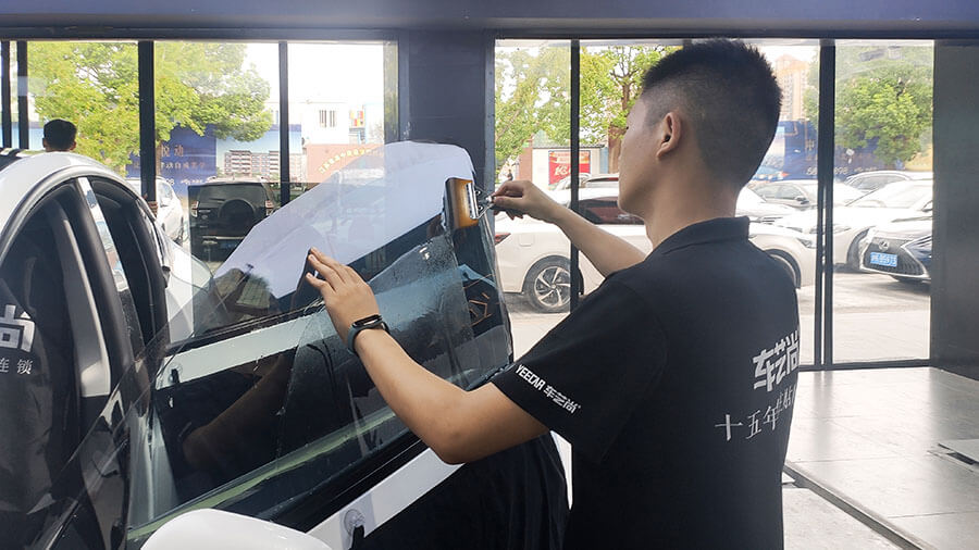 施工V-kool威固隔热膜前档VK70+侧后挡K35+天窗K35流程