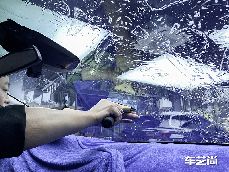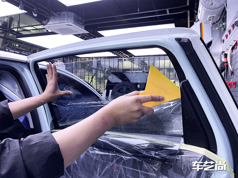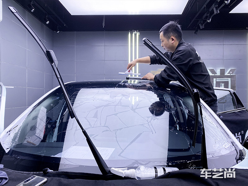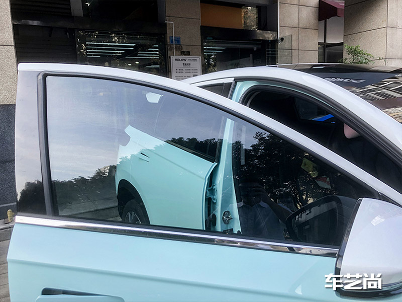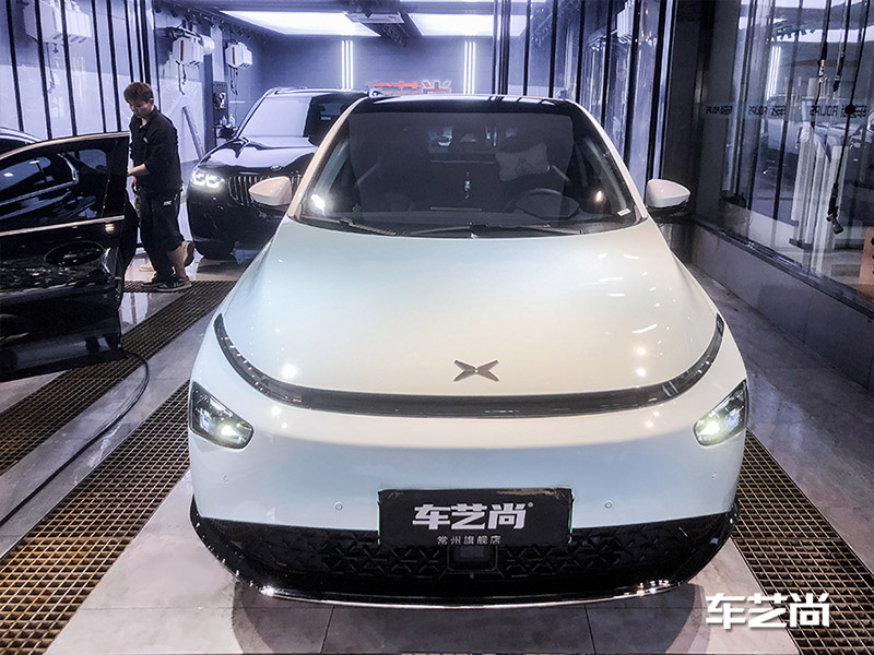 蓝色小鹏G3施工龙膜玻璃膜案例