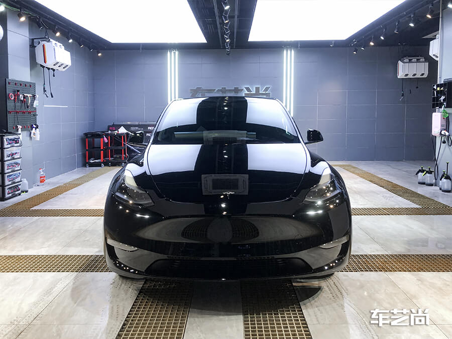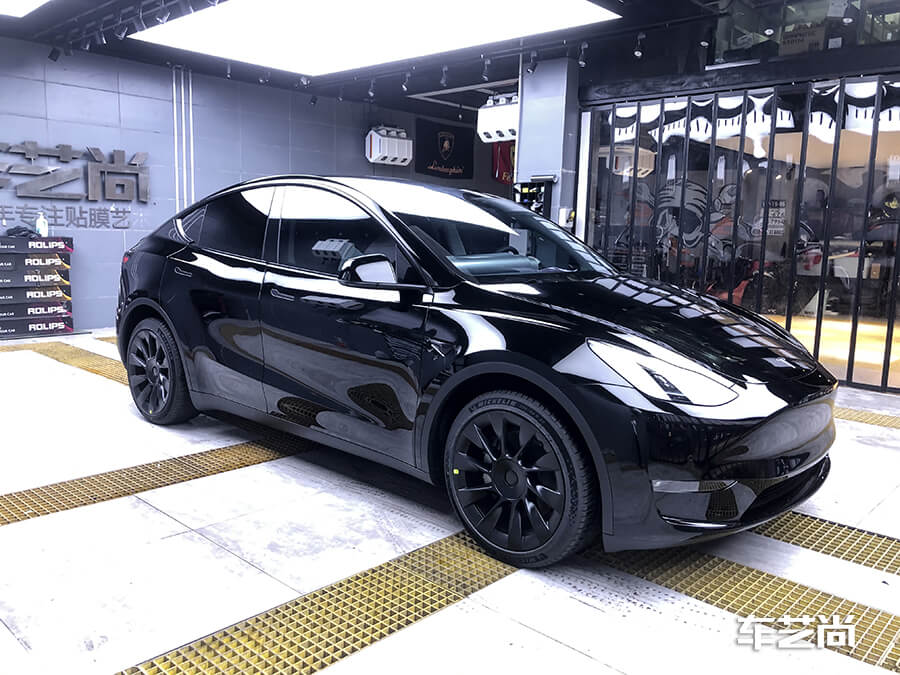 特斯拉modelY黑色施工龙膜隔热膜畅悦80+侧挡案例