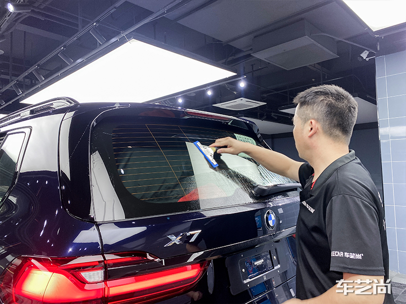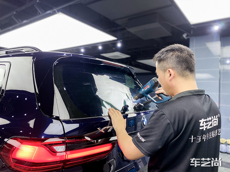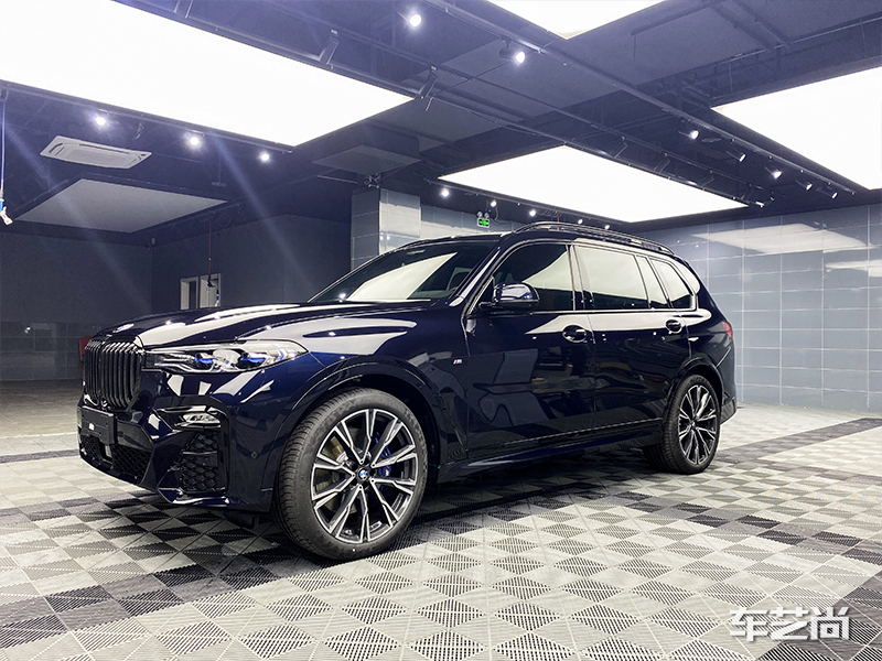 宝马X7蓝色施工威固隔热膜VK70+VK25流程及效果