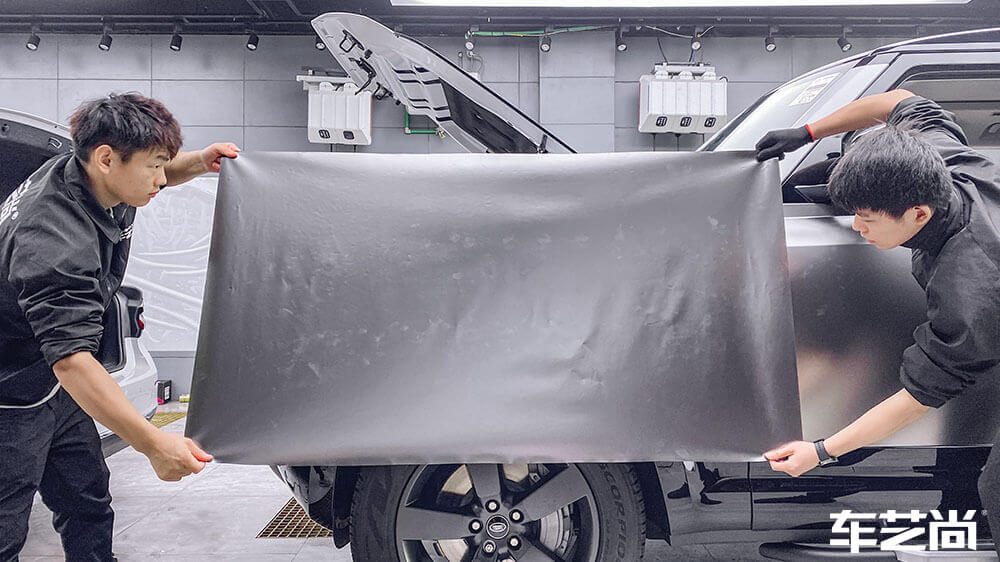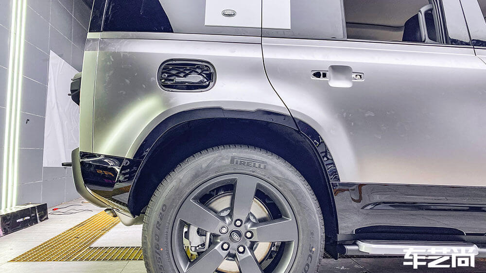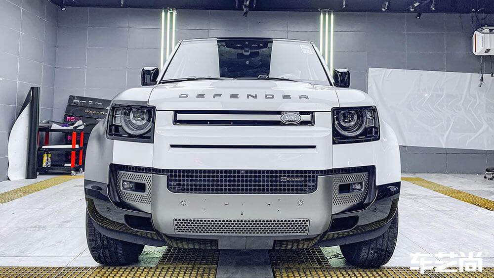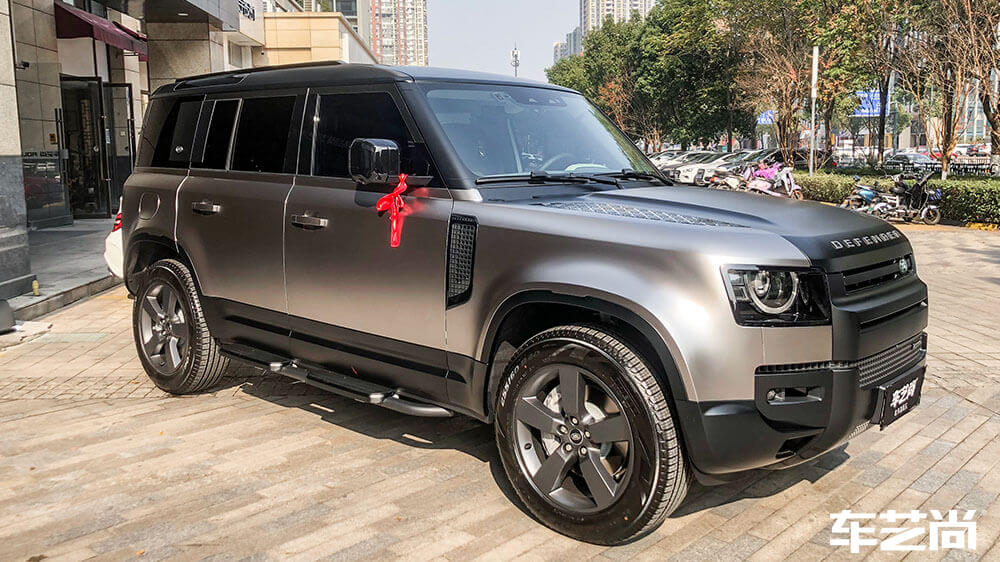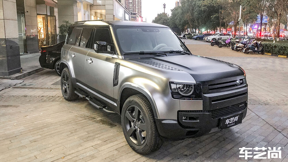 路虎卫士白色施工车身改色AX亚面液态金属银案例