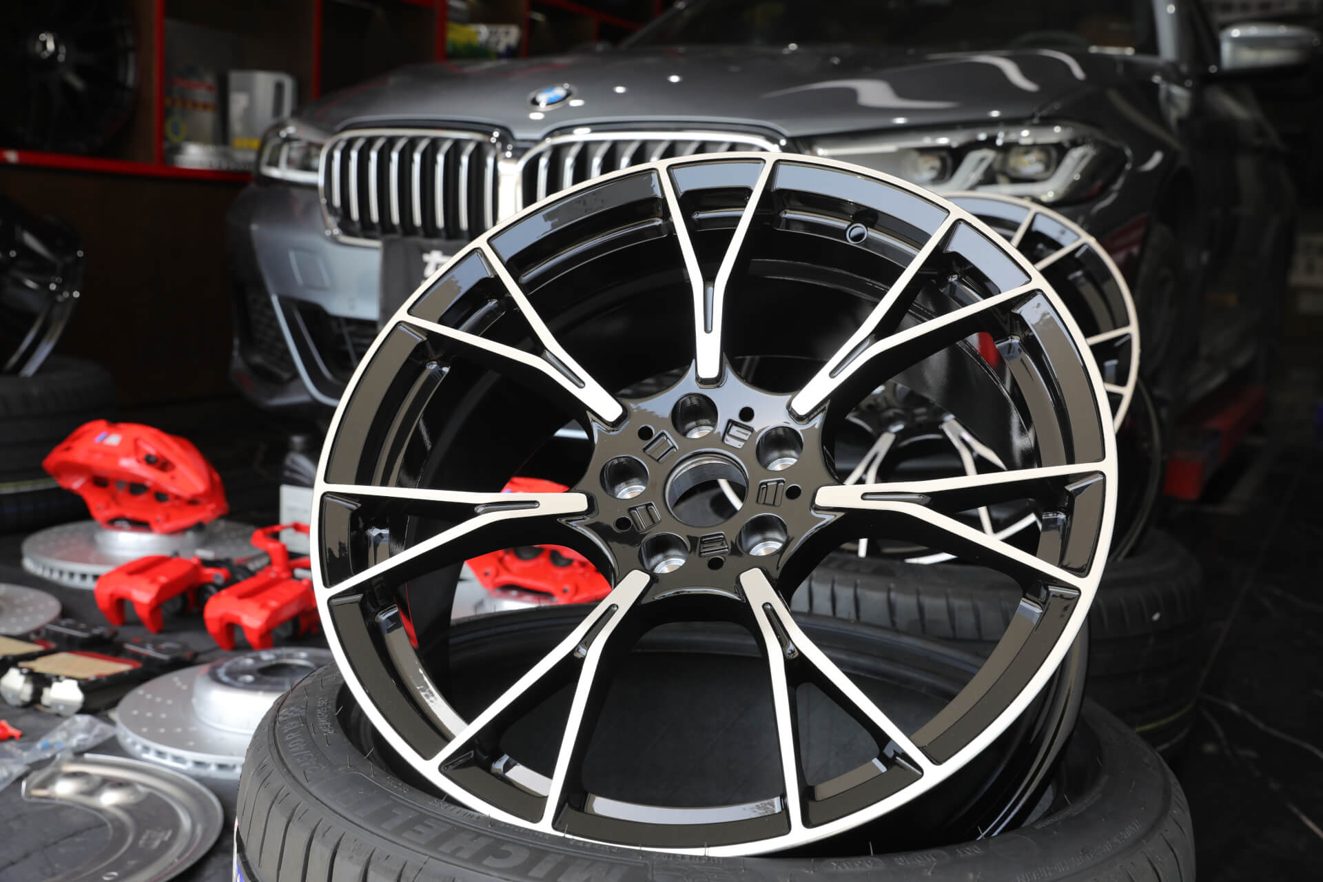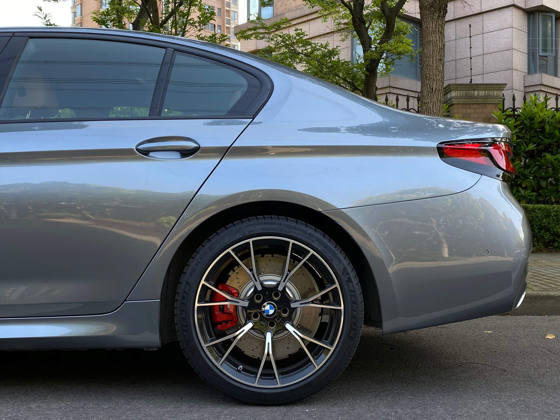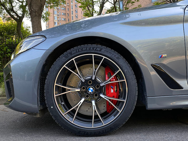 宝马新款5系M Performance高性能刹车卡钳,669M轮毂上车后的效果
