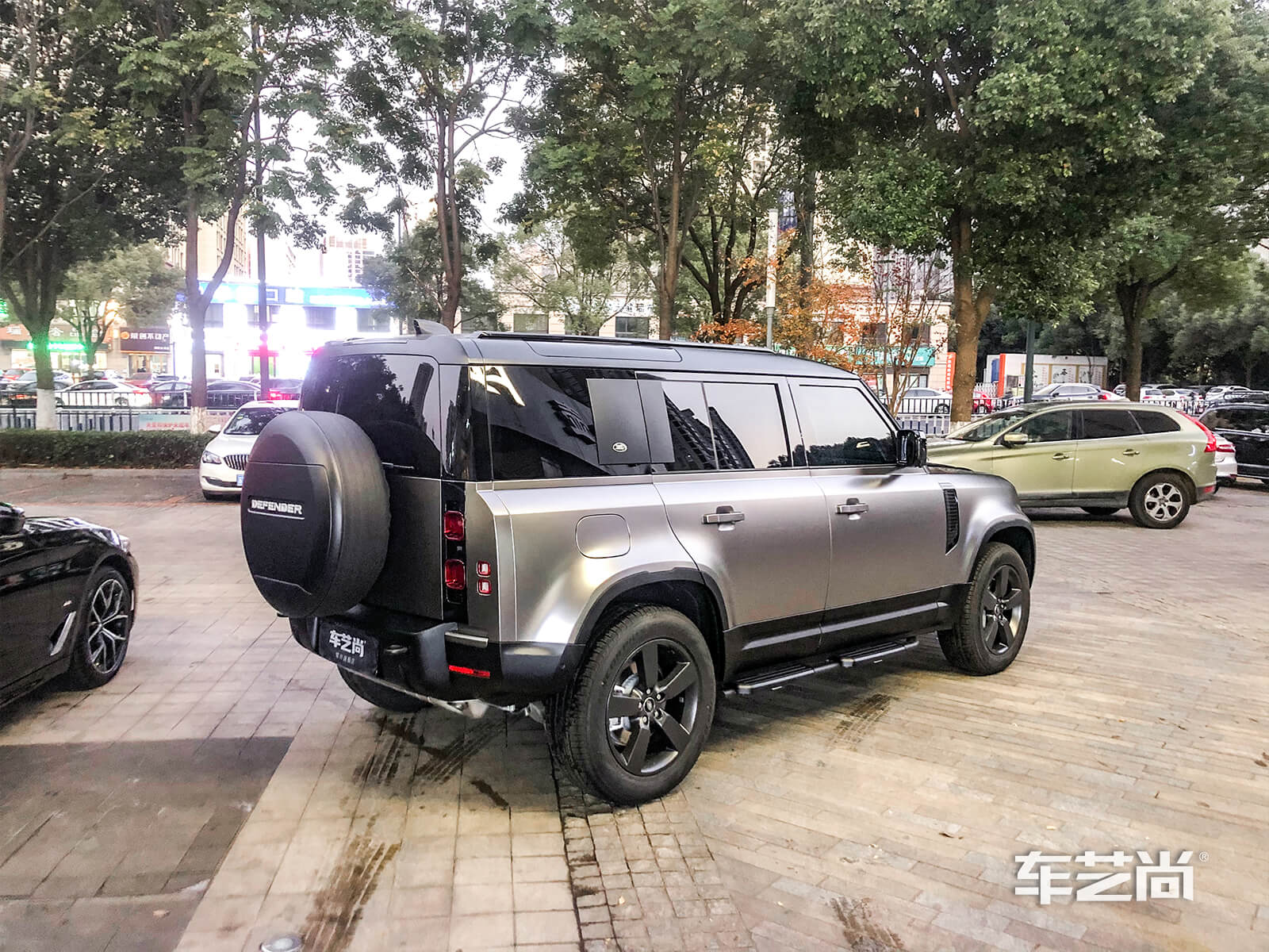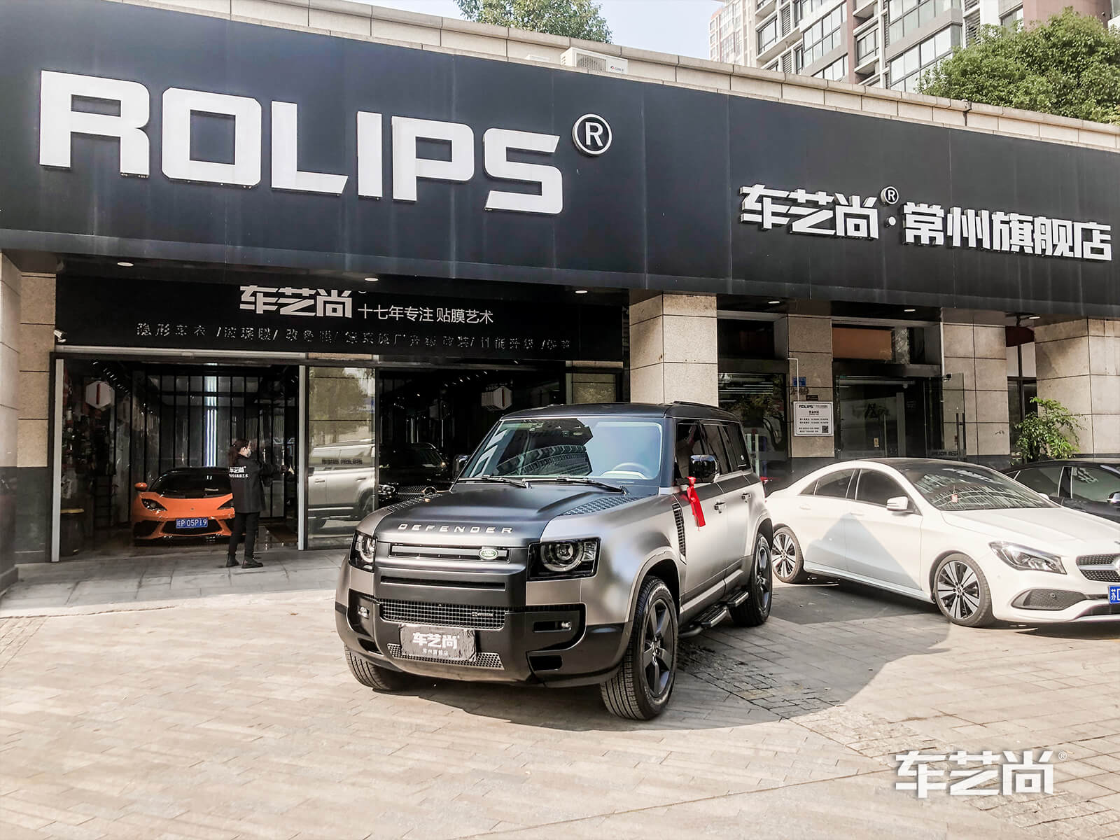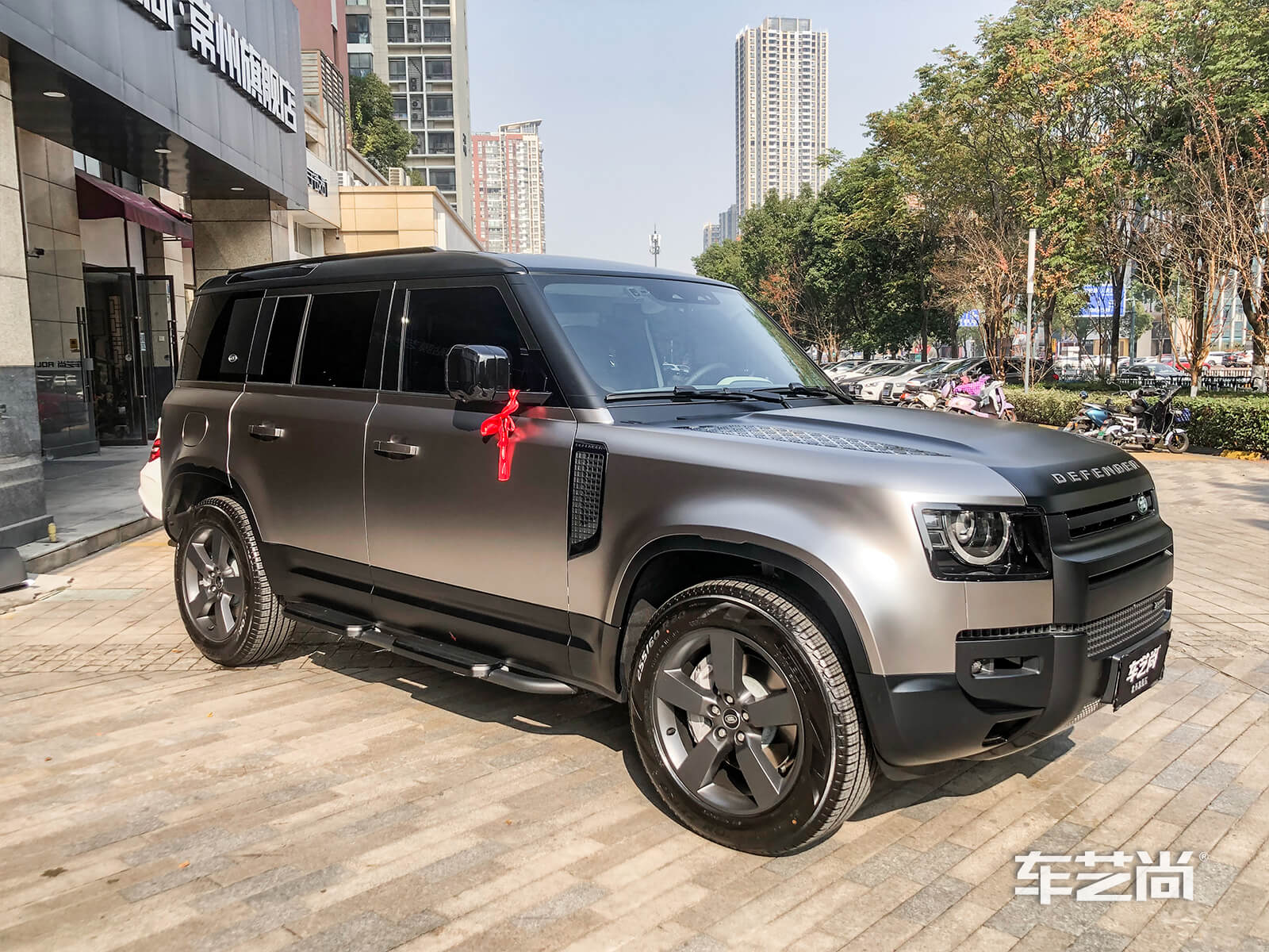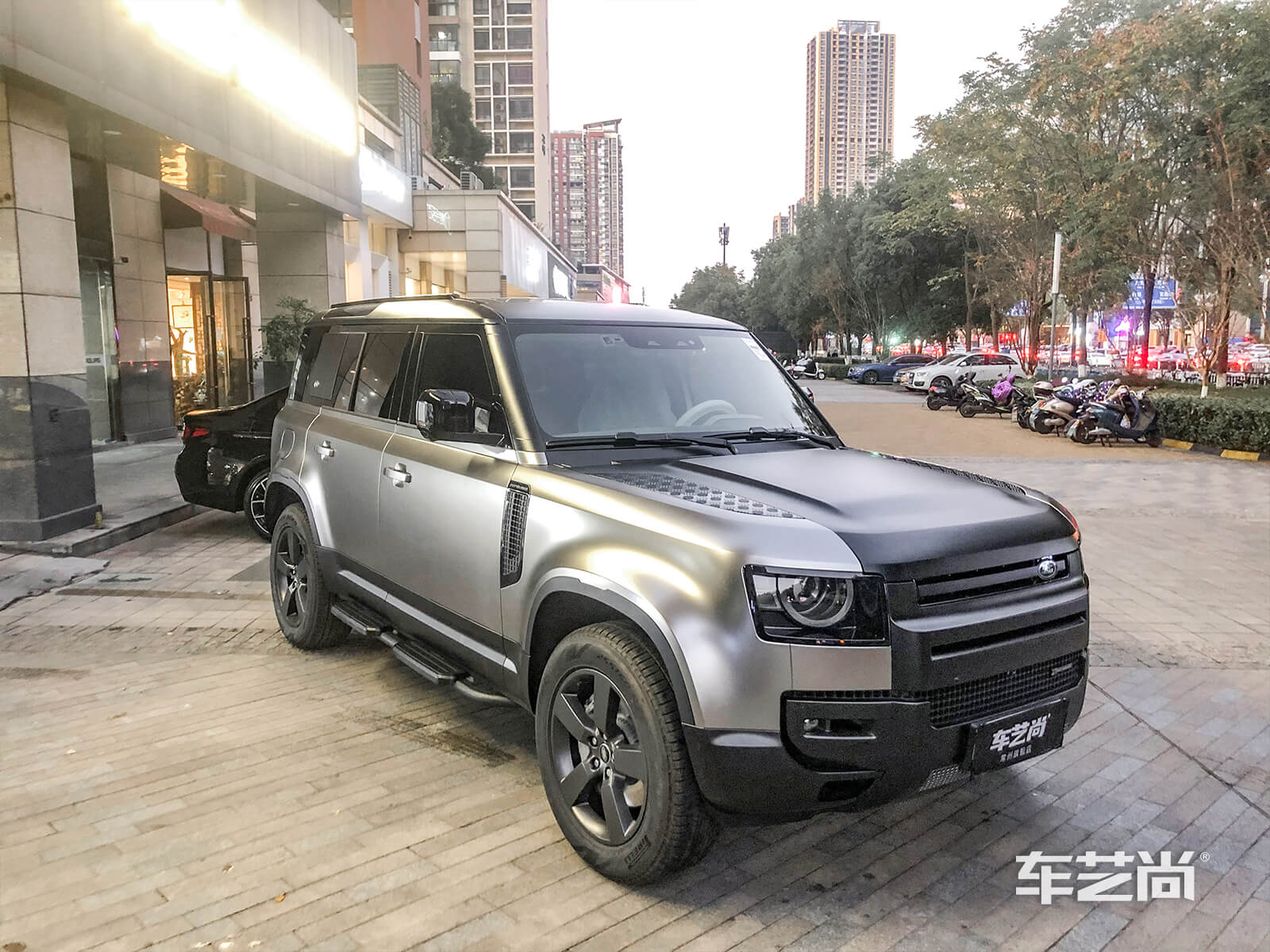 路虎卫士白色施工AX改色膜亚面液态金属银+亚黑效果:
