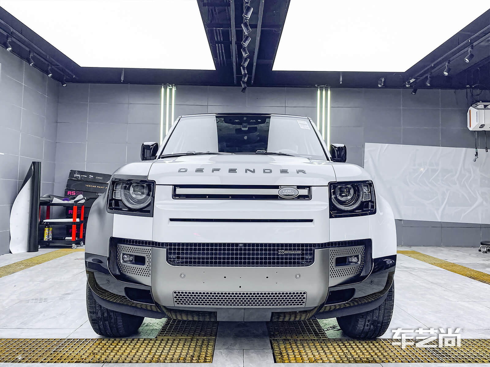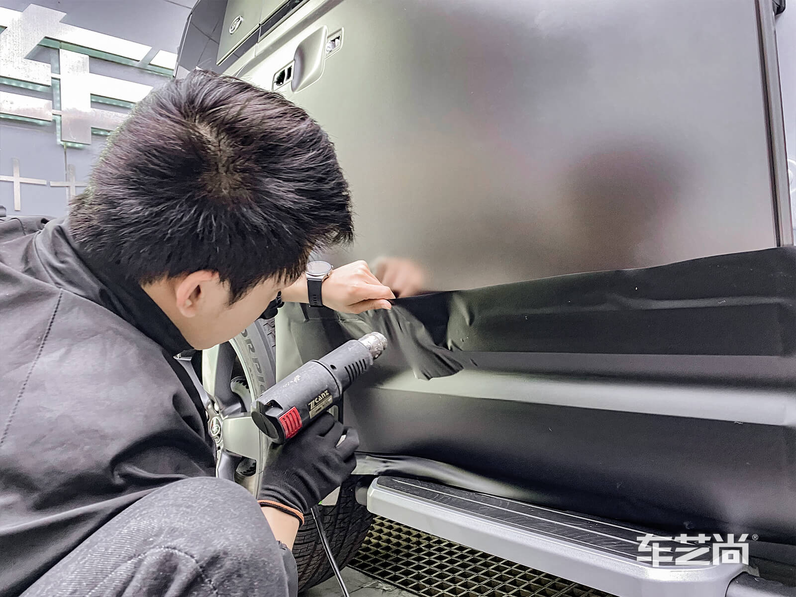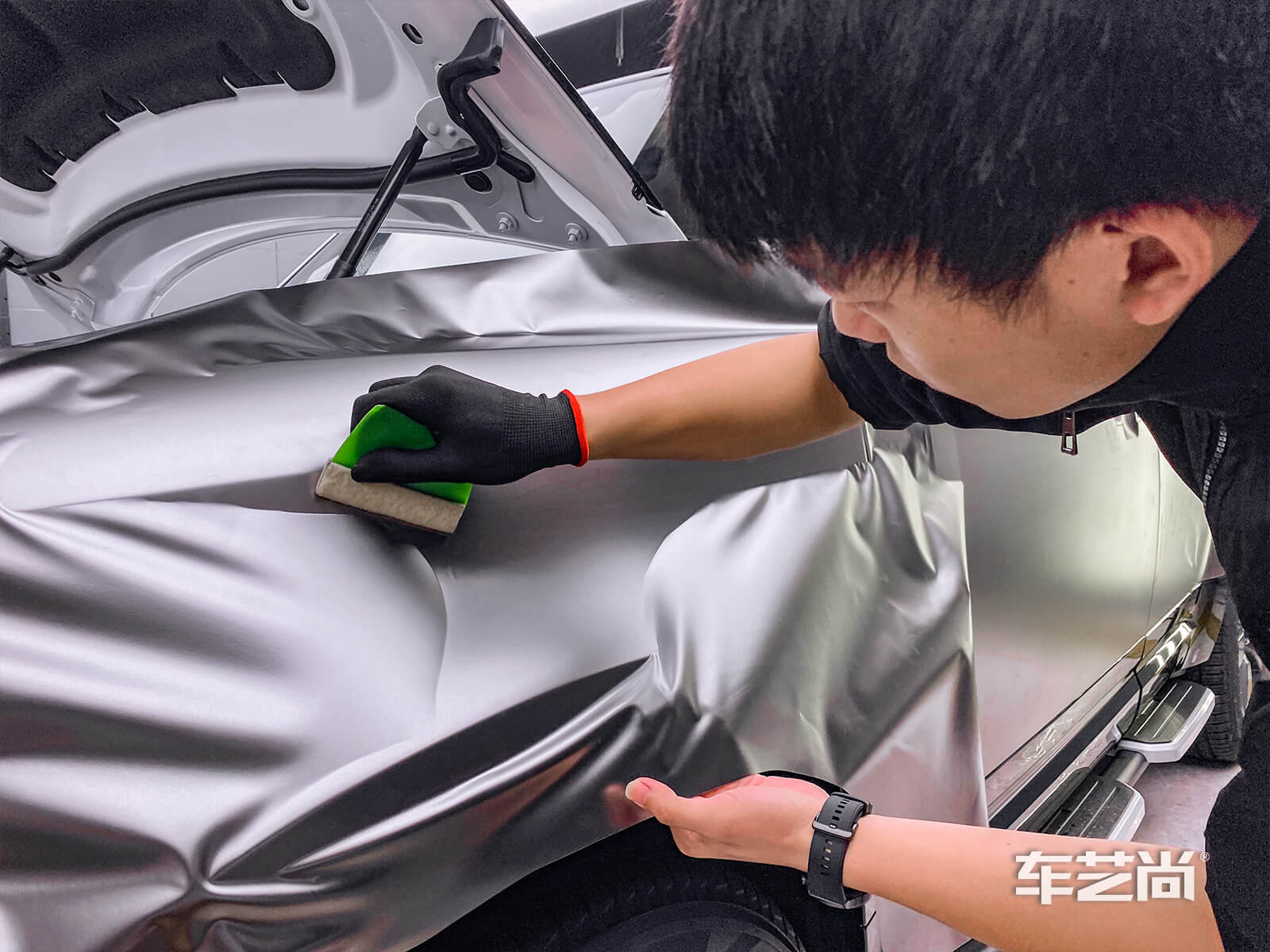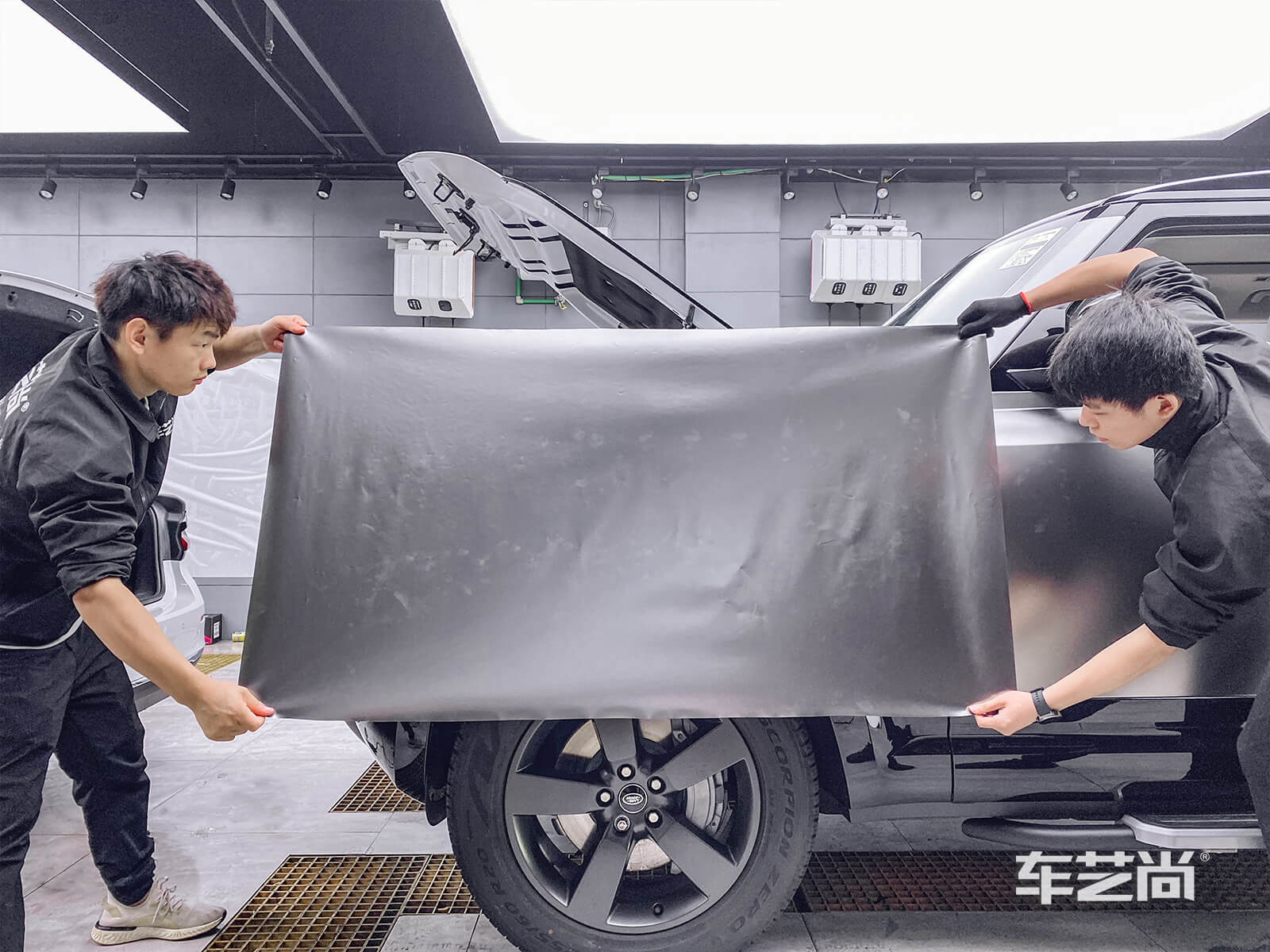 路虎卫士白色施工AX改色膜亚面液态金属银+亚黑流程: