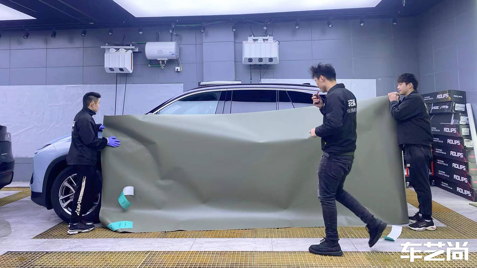 蔚来ES6施工车身改色AX绸缎卡其绿流程