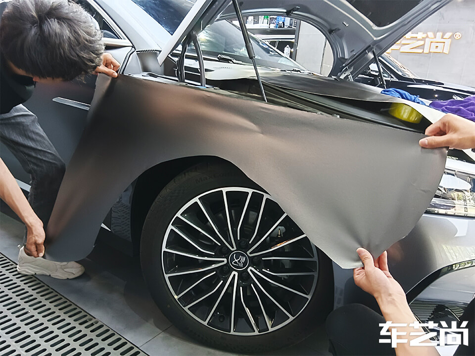 比亚迪汉施工YEECAR改色膜超亚山灰
