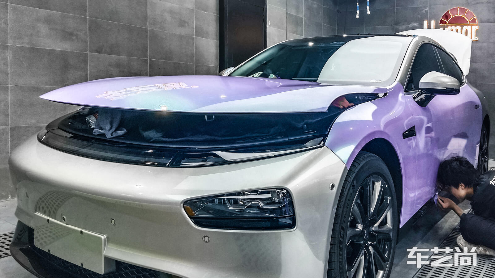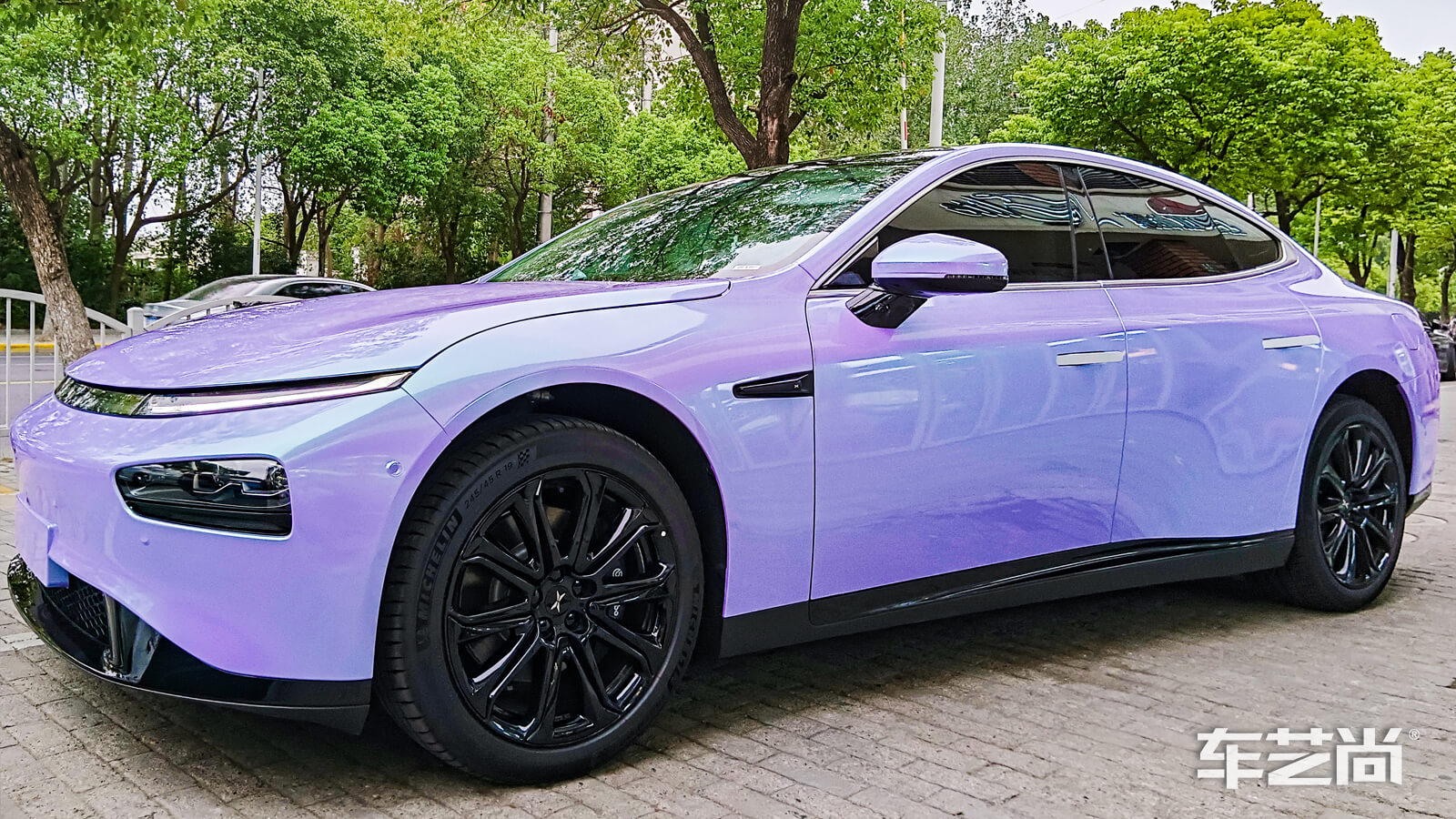 卷到没边,小鹏P7施工YEECAR改色双色紫魅绿