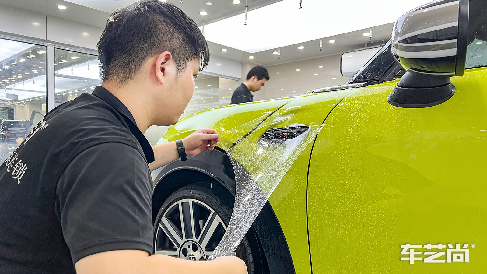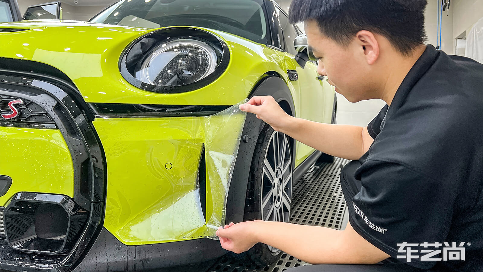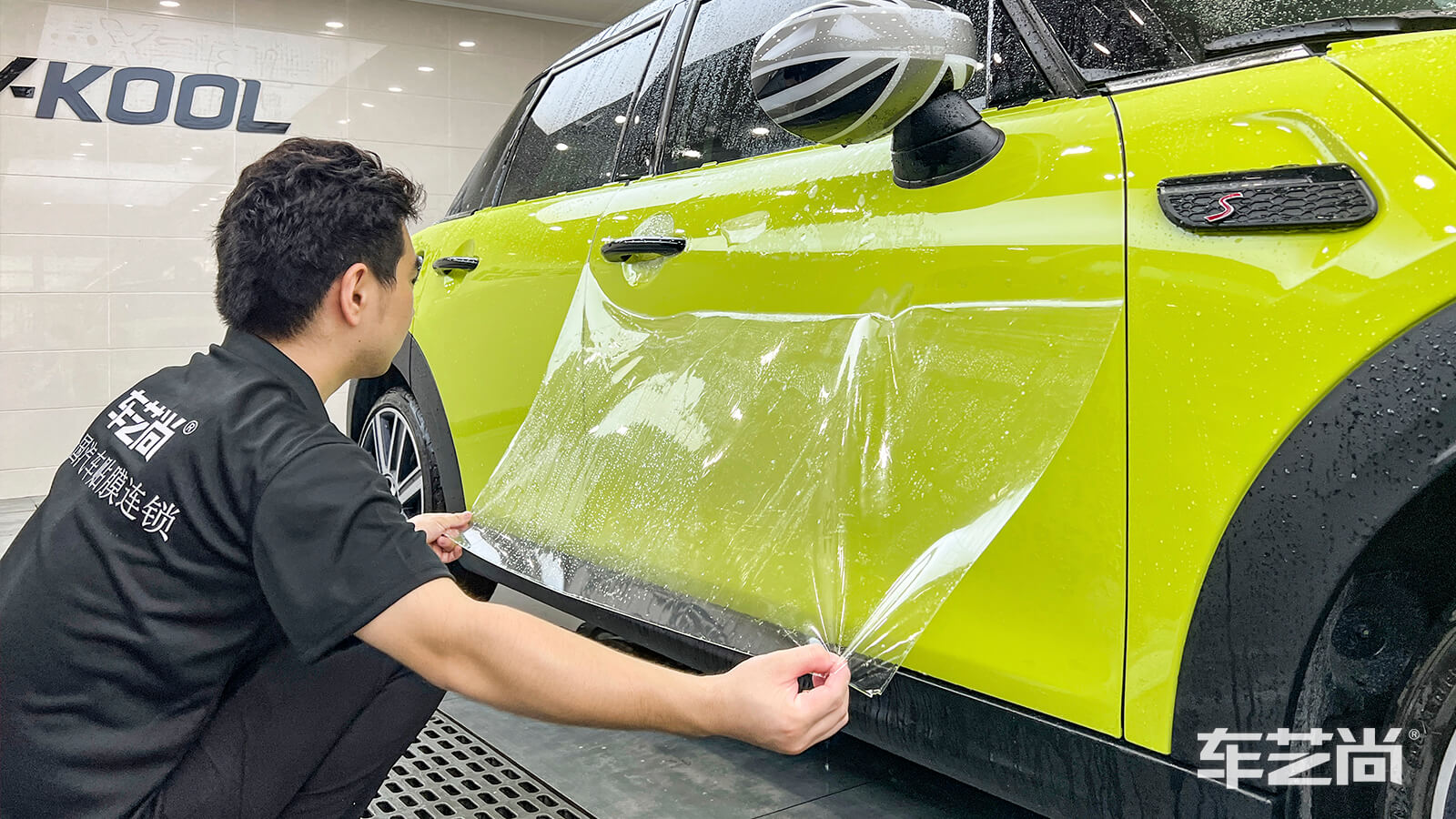 迷你Mini四门绿色施工隐形车衣流程及效果