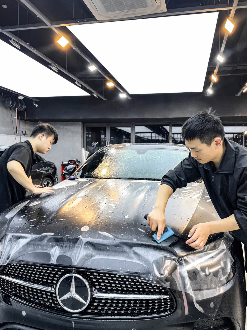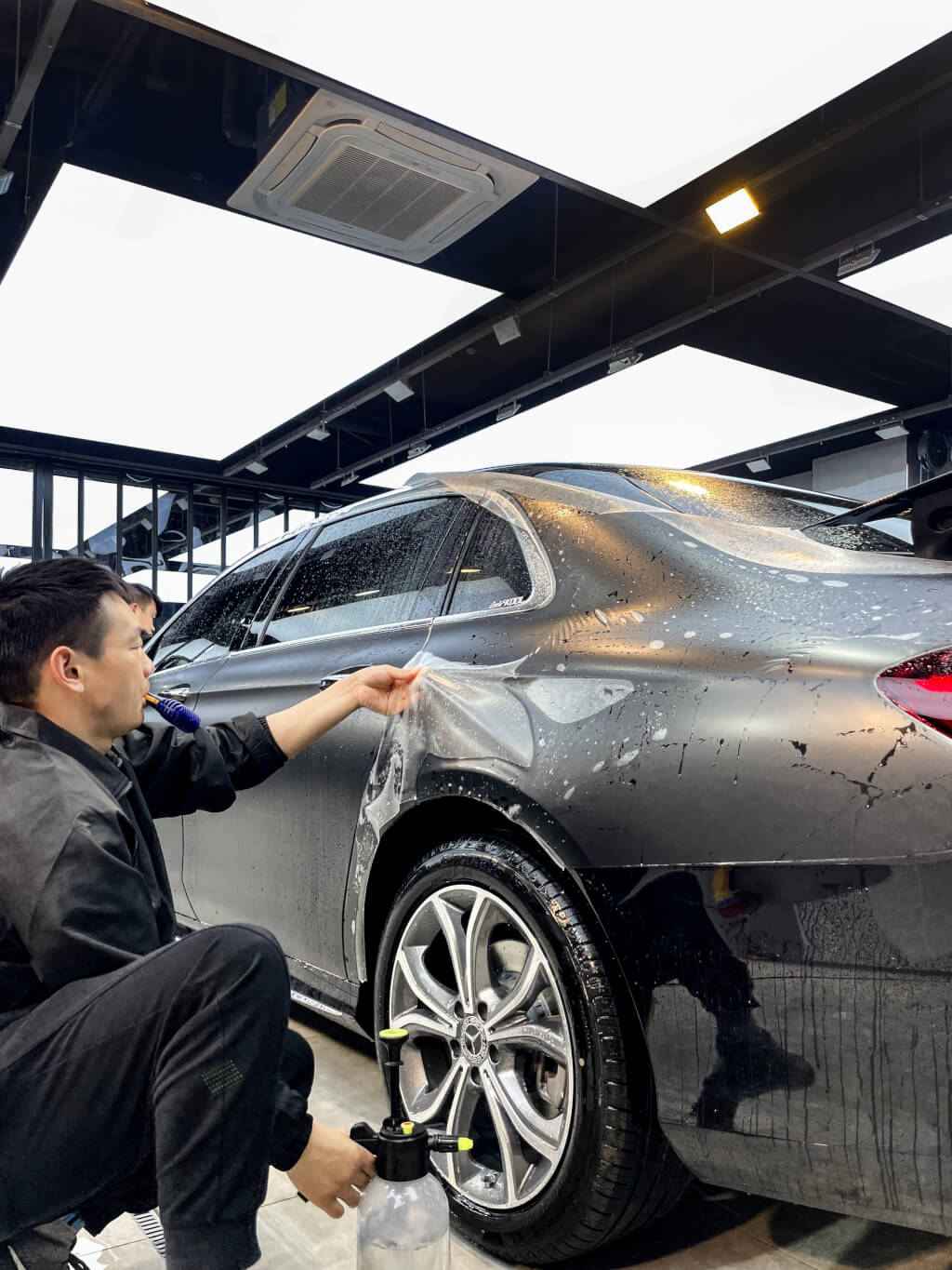 一、奔驰E级施工YEECAR哑光车衣施工案例展示