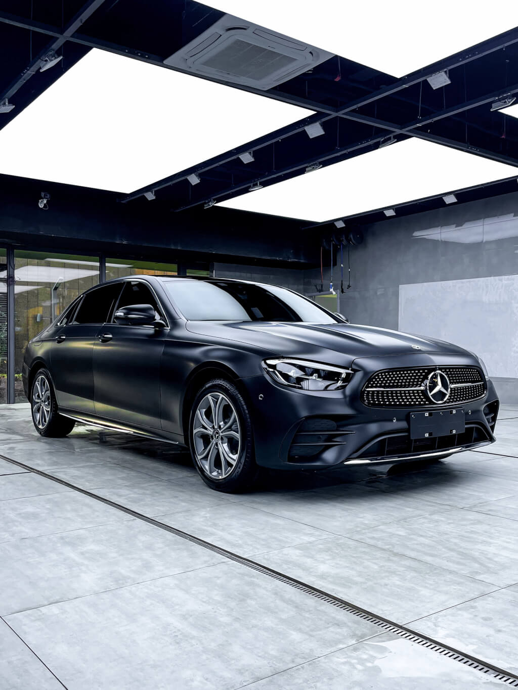 二、奔驰E级施工YEECAR哑光车衣施工案例效果图