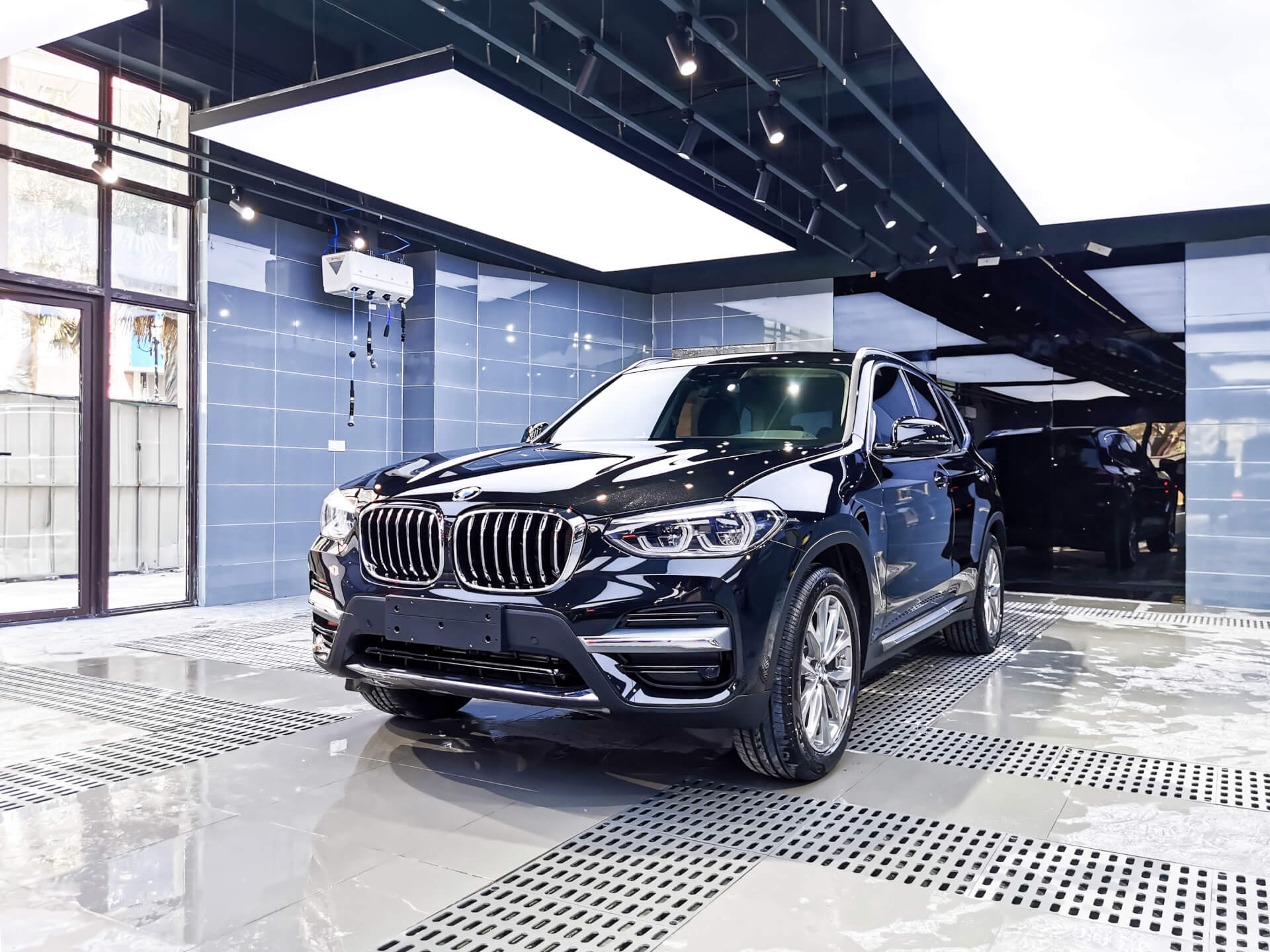 车艺尚南京旗舰店位于江苏省南京市建邺区集庆门大街168号,中北英郡南1门隔壁,分为两个独立的连排门店,占地面积550平方米,共有12个专业的贴膜工位和性能升级工位。