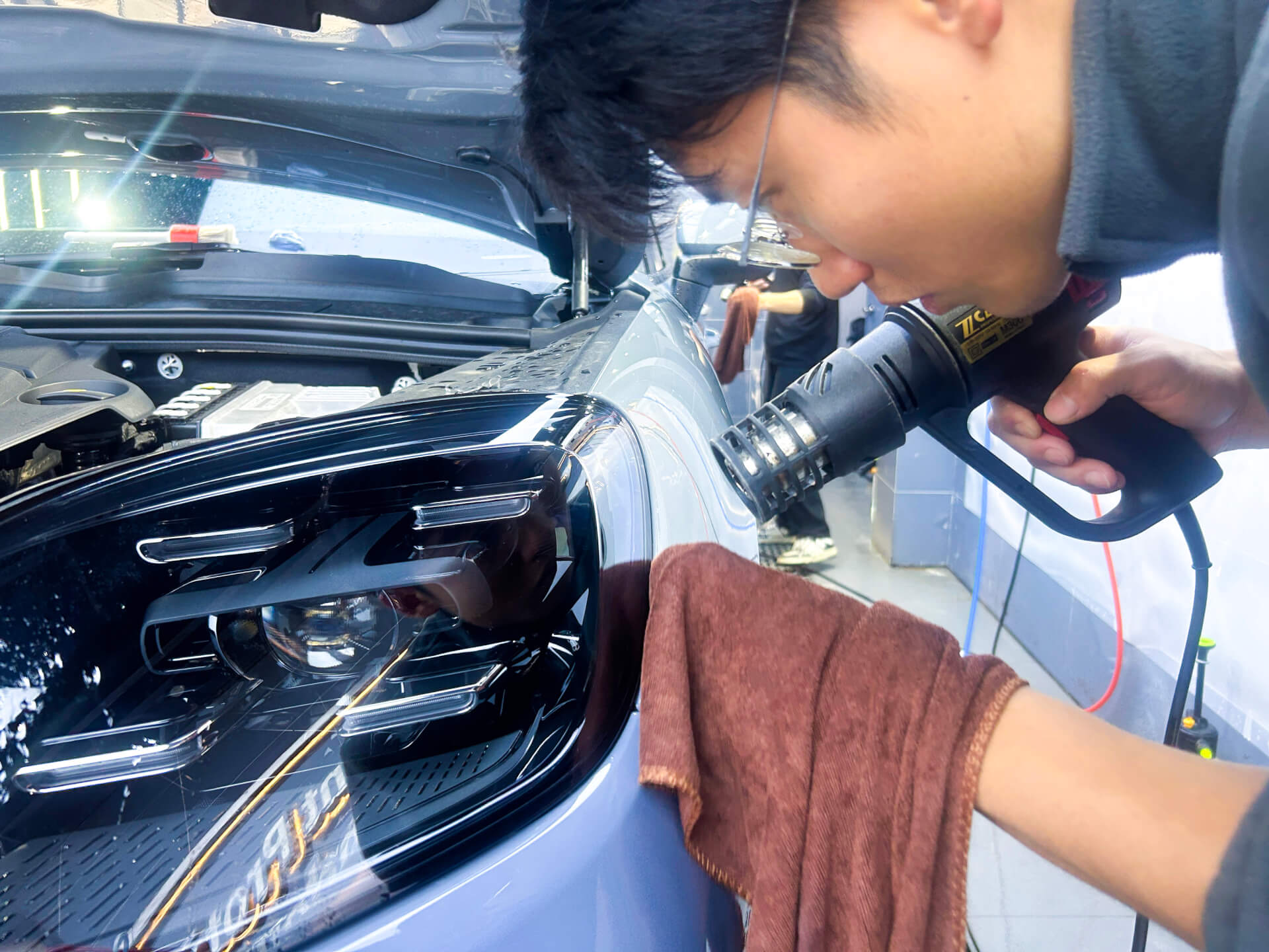 微距贴膜——车艺尚窗膜施工中