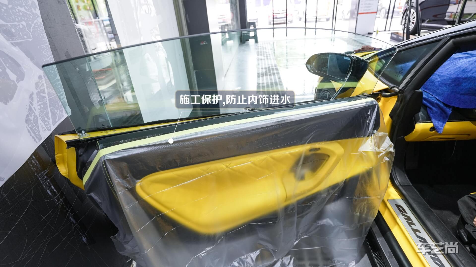 微距贴膜:车艺尚窗膜施工中,玻璃膜贴到了边缘,几乎看不出贴膜痕迹。