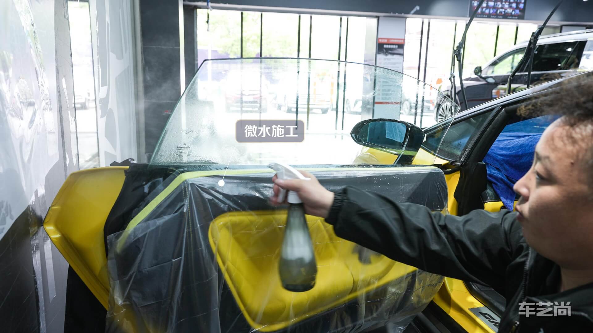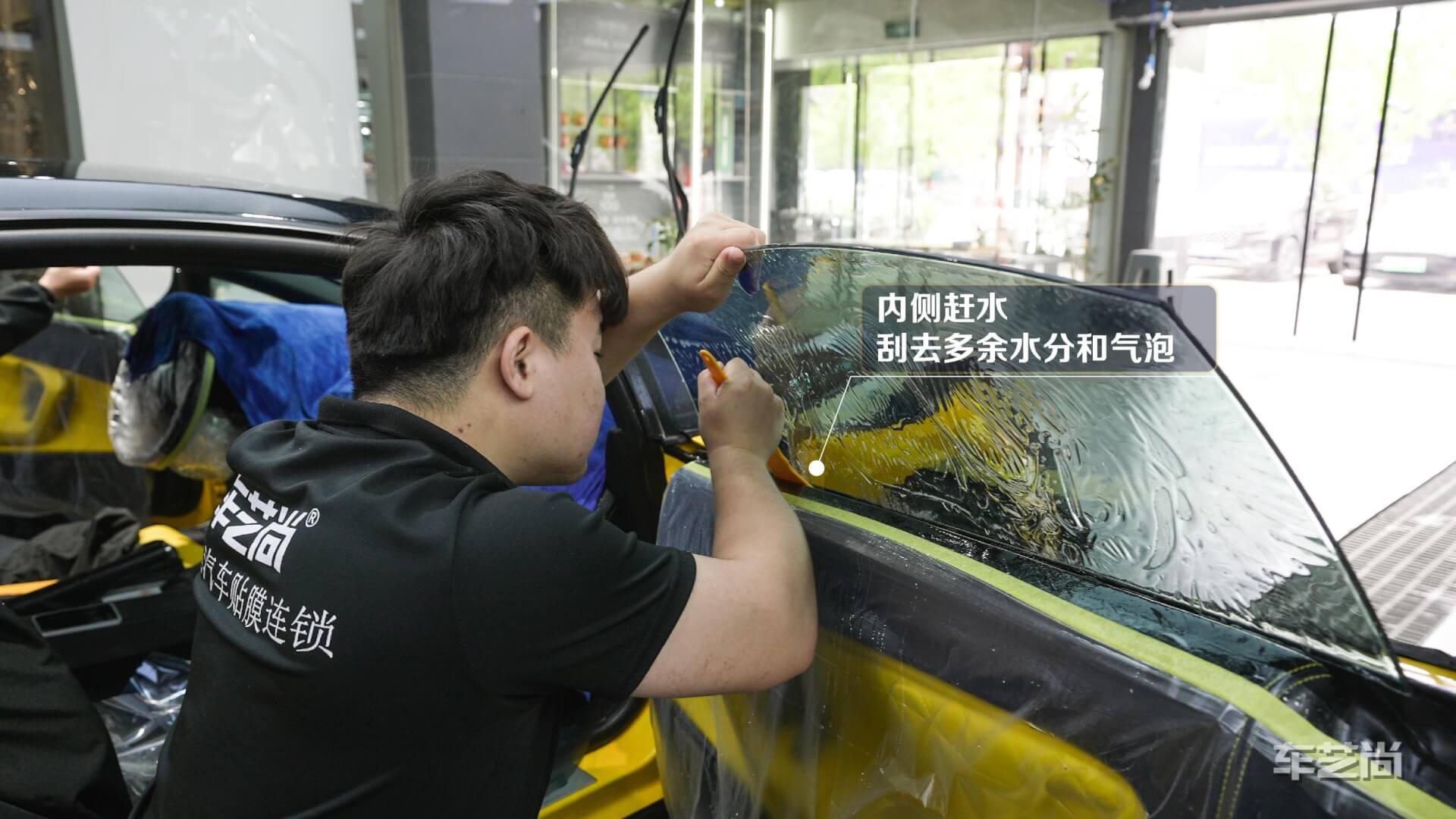 微水施工:只采用少量的水就能贴完全车窗膜,避免施工中门板电路、车内仪表台等进水受潮。