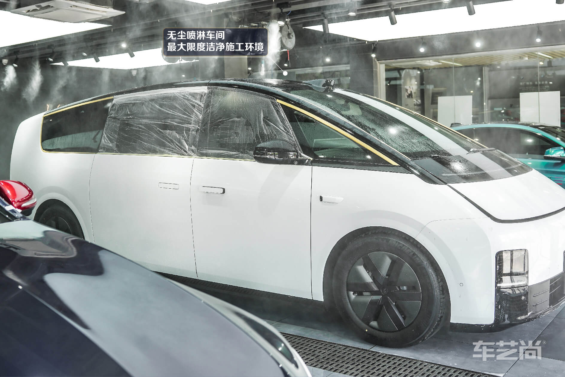 车艺尚御水路店配备有专业照明系统和大型喷淋除尘设备,以及标准的车间疏水系统,可以最大限度降低空气中的悬浮颗粒,减少尘点附着。施工环境干净、明亮、整洁,全程无尘施工,保障施工品质。