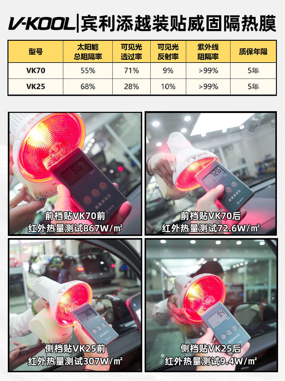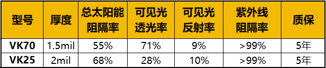 威固隔热膜前档VK70+侧后VK25介绍: