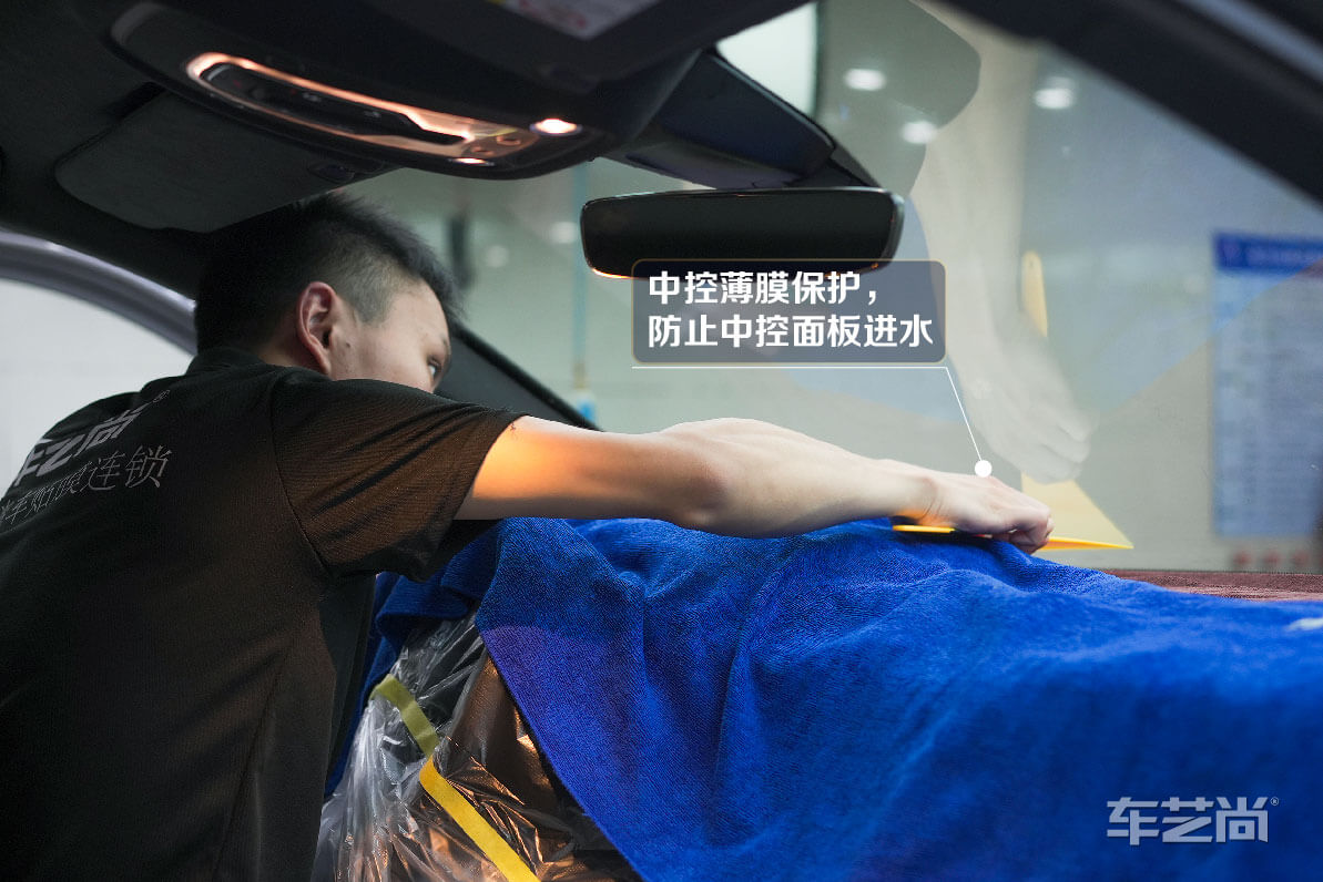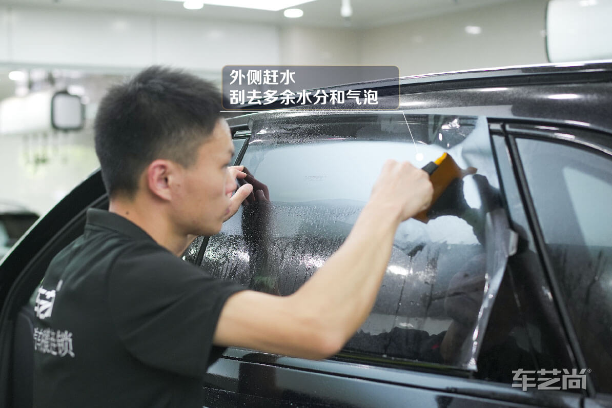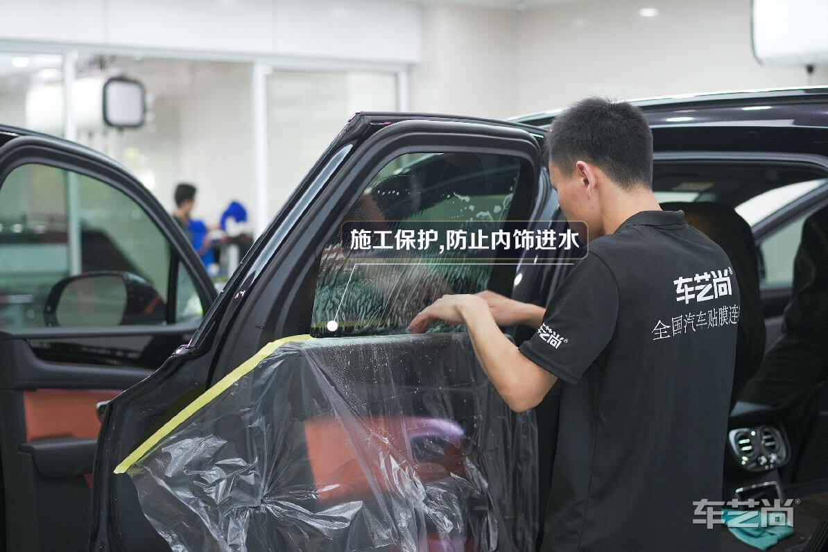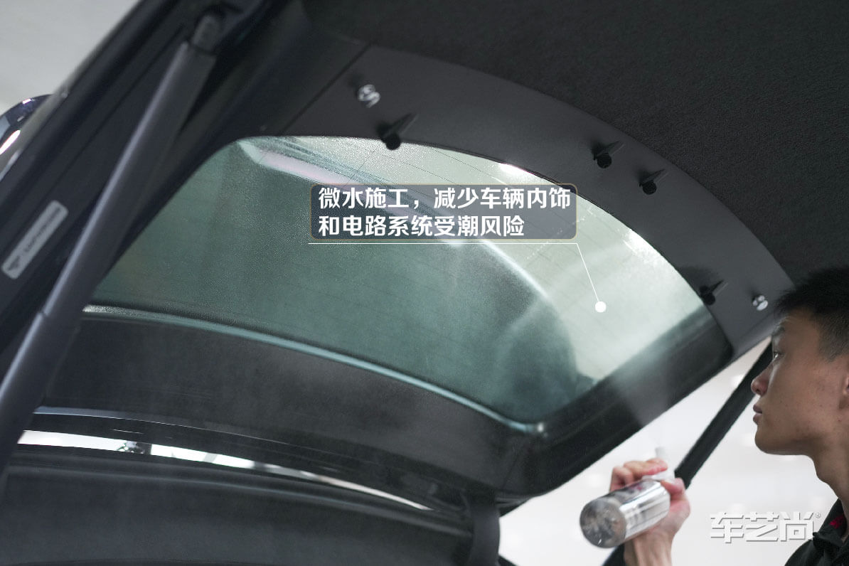 微水施工:只采用少量的水就能贴完全车窗膜,避免施工中门板电路、车内仪表台等进水受潮。
