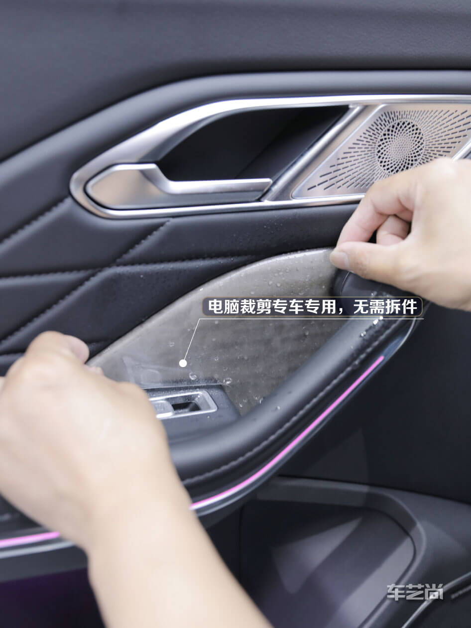 微水施工:只采用少量的水就能贴完全车窗膜,避免施工中门板电路、车内仪表台等进水受潮。