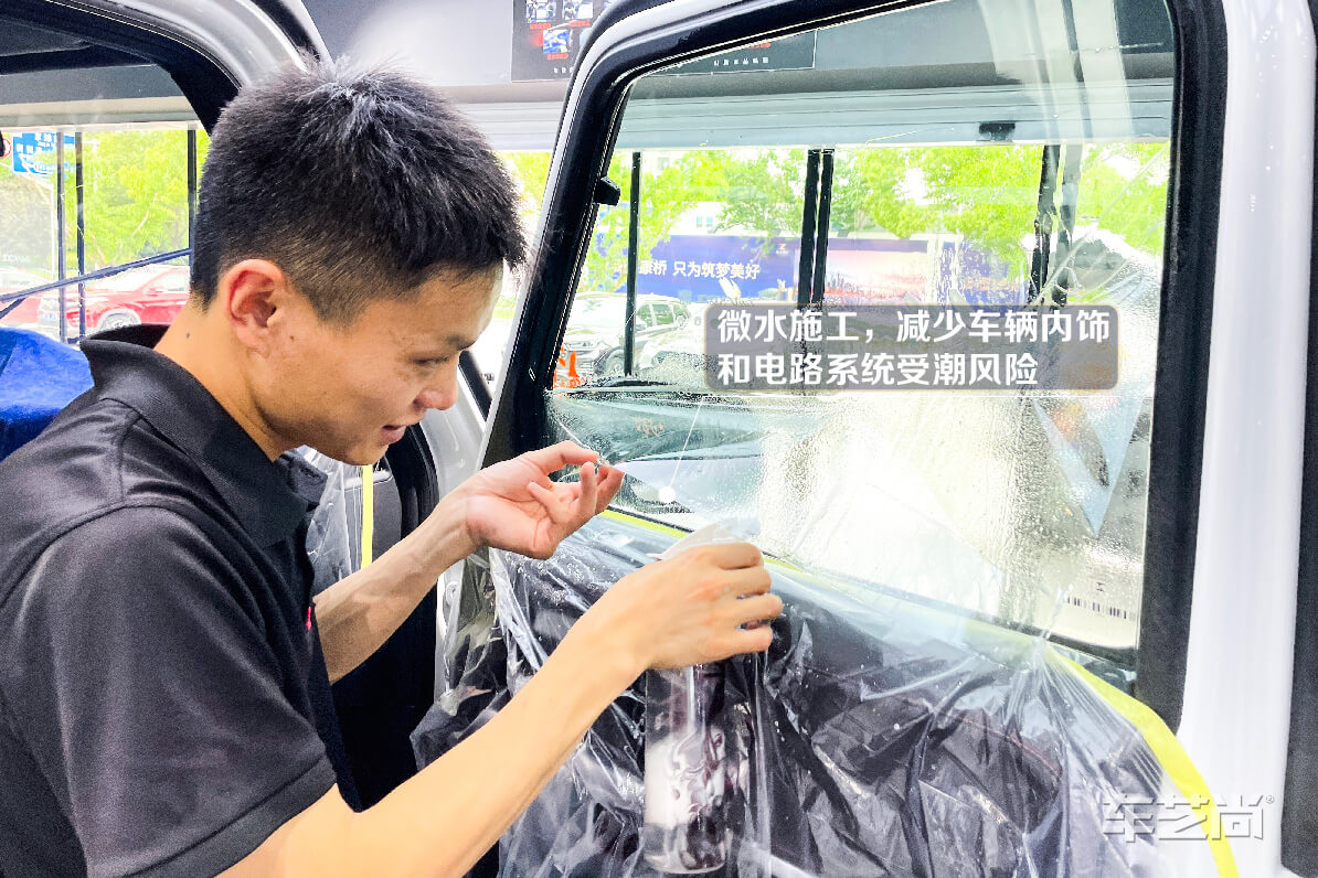 微水施工:只采用少量的水就能贴完全车窗膜,避免施工中门板电路、车内仪表台等进水受潮。