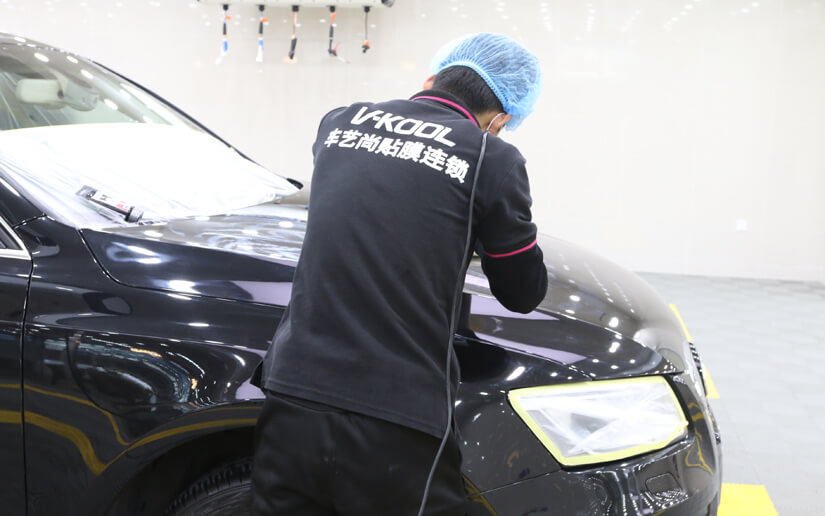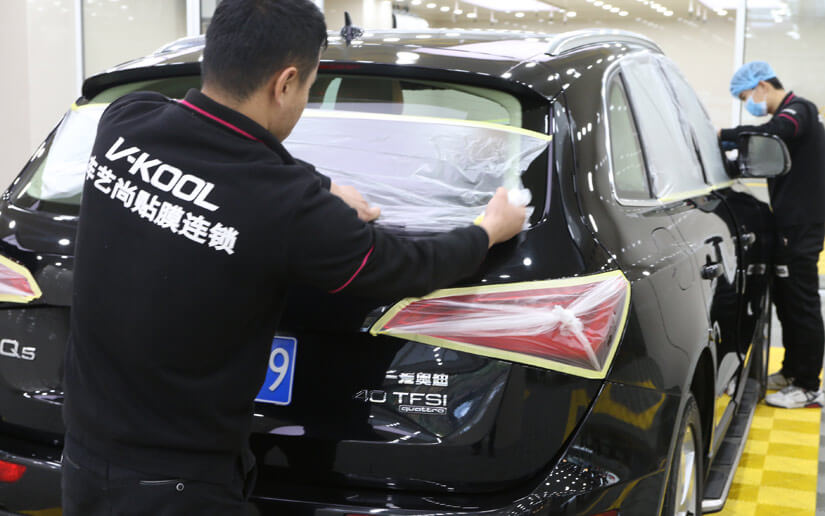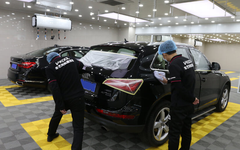 ● 施工前车艺尚技师对玻璃、镀铬件等进行保护