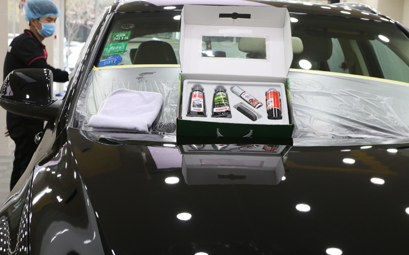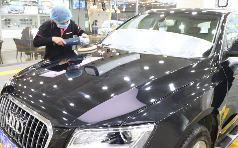 ● 技师在对车漆进行提亮