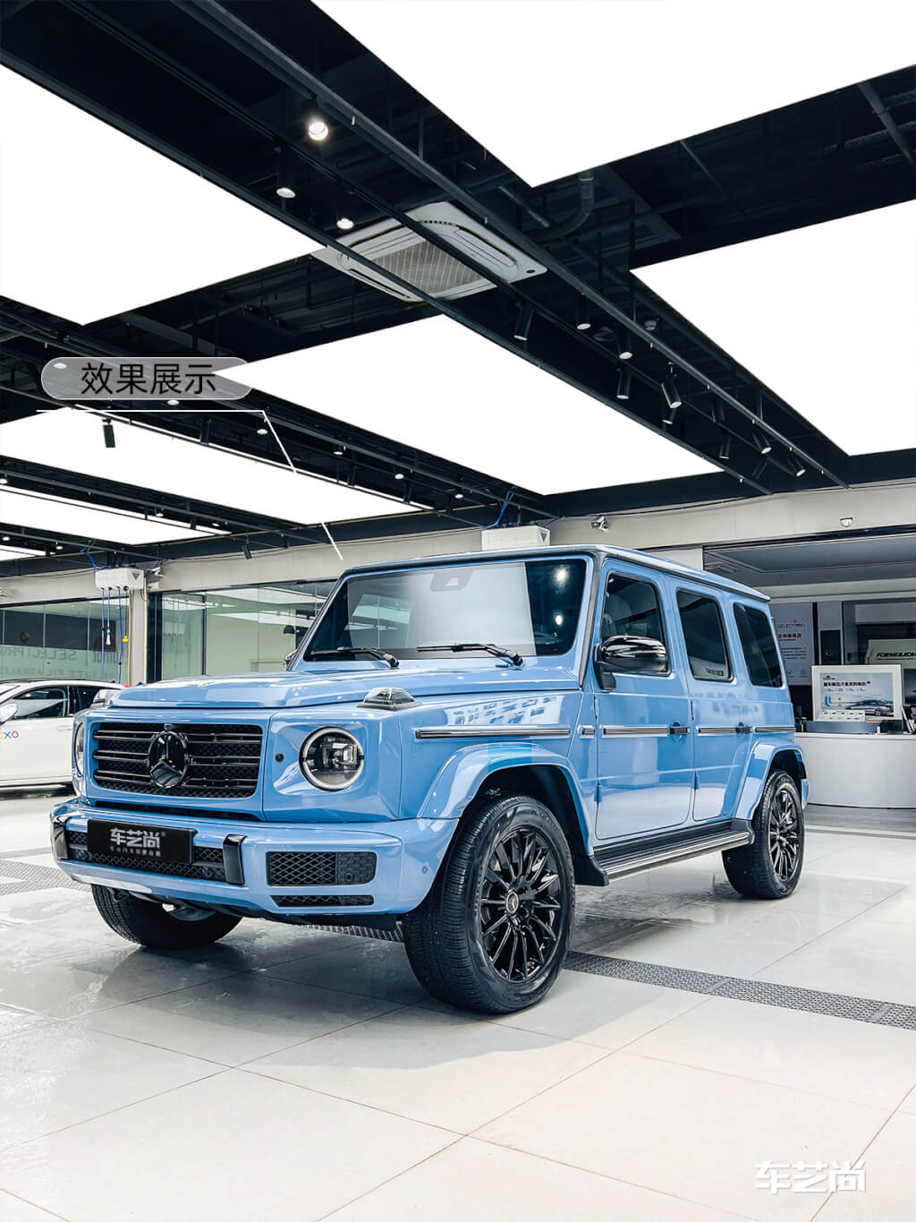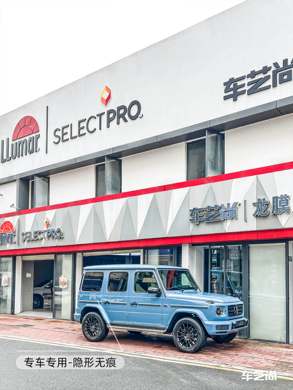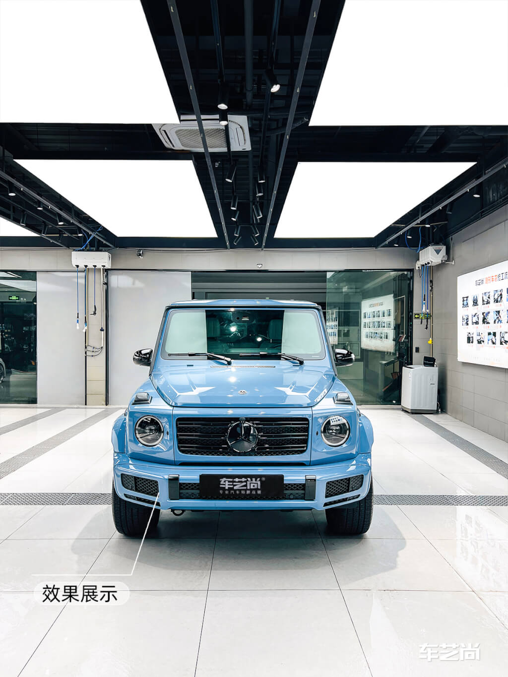 奔驰大G肌肉感很强,大越野外观豪迈又大气,蓝色车漆绚丽又少见,所以贴个隐形车衣保护性更强,龙膜G2plus保护性能直接拉满!