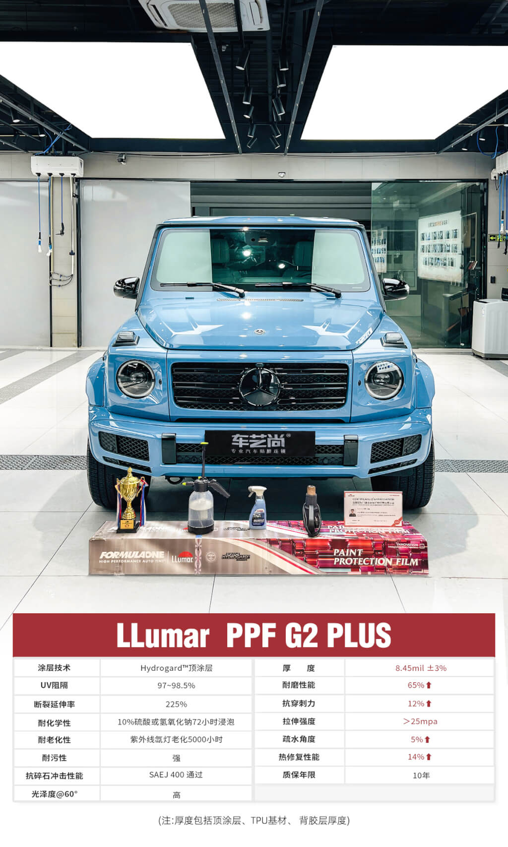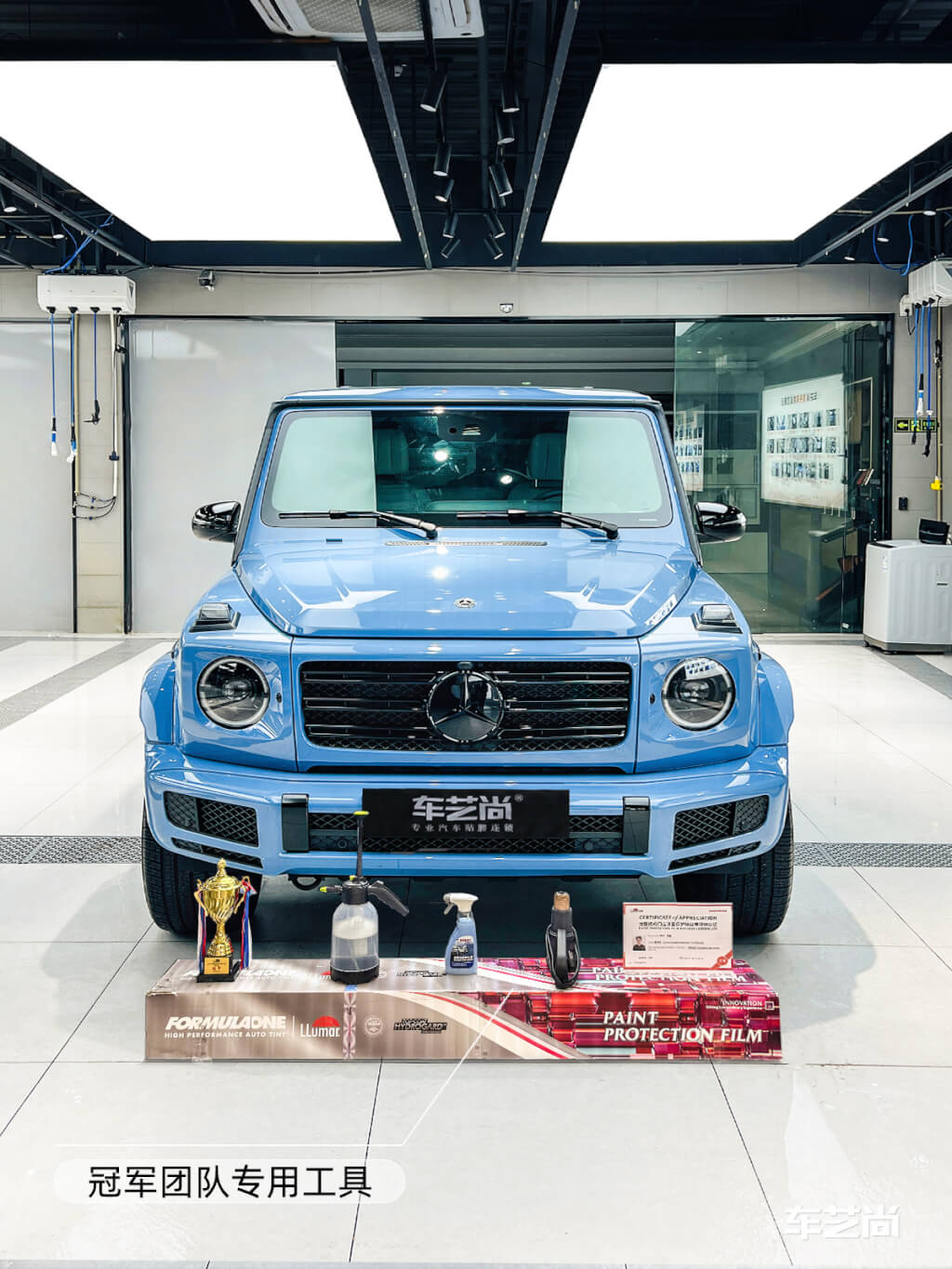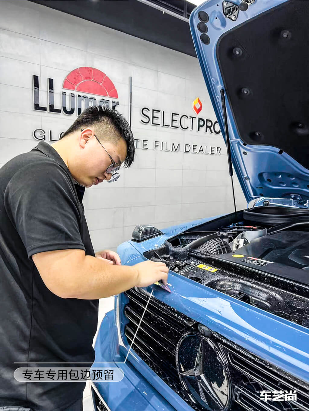 奔驰大G肌肉感很强,大越野外观豪迈又大气,蓝色车漆绚丽又少见,所以贴个隐形车衣保护性更强,龙膜G2plus保护性能直接拉满!