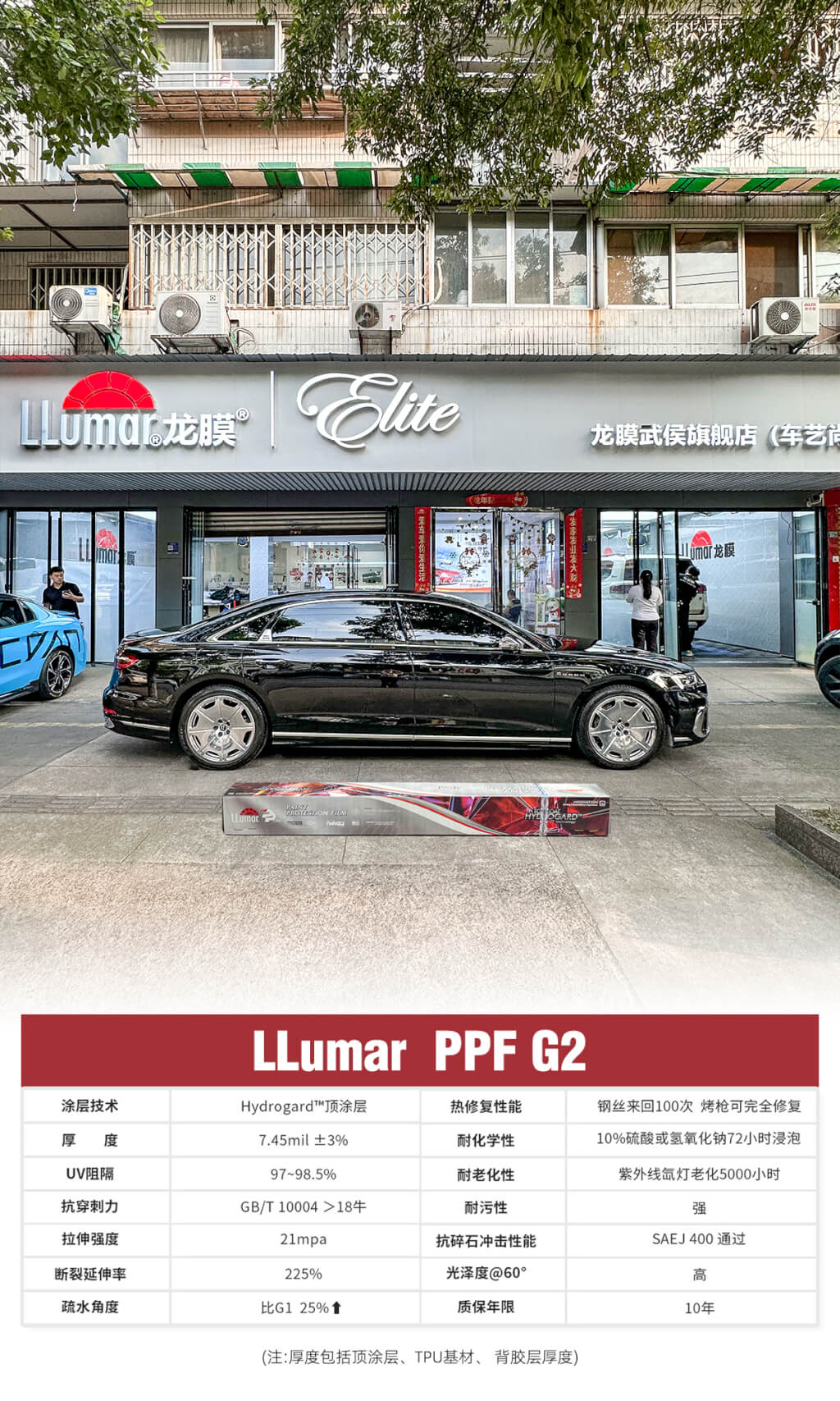 奥迪A8霍希版贴龙膜隐形车衣G2施工效果: