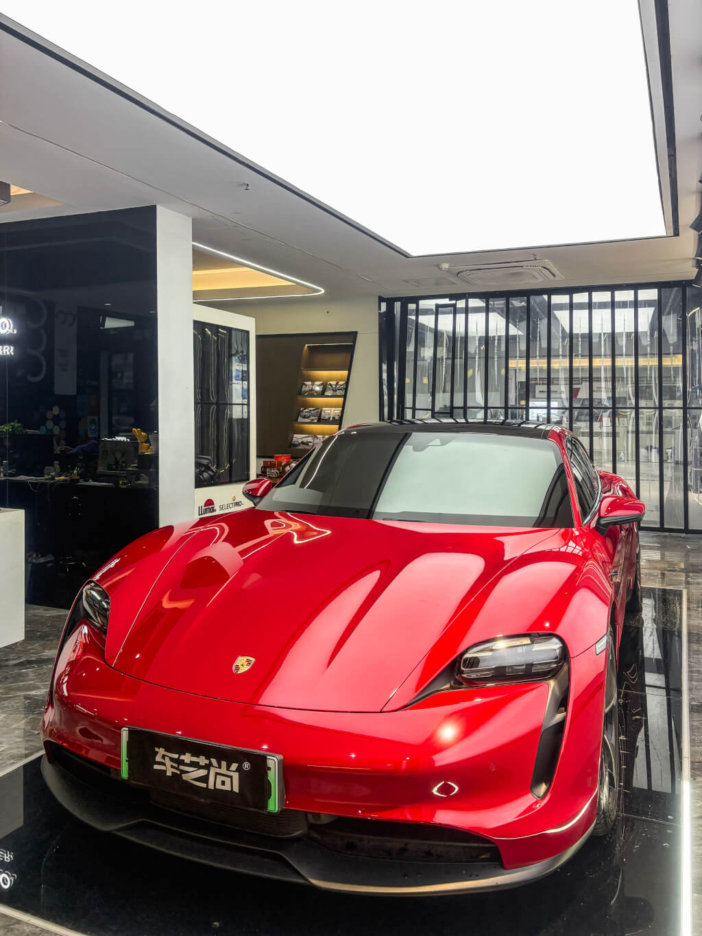 保时捷Taycan是保时捷公司推出的首款全电动汽车,是一款四门轿跑车,百公里加速时间为3.5秒,拥有500公里的续航里程和800伏的快速充电。