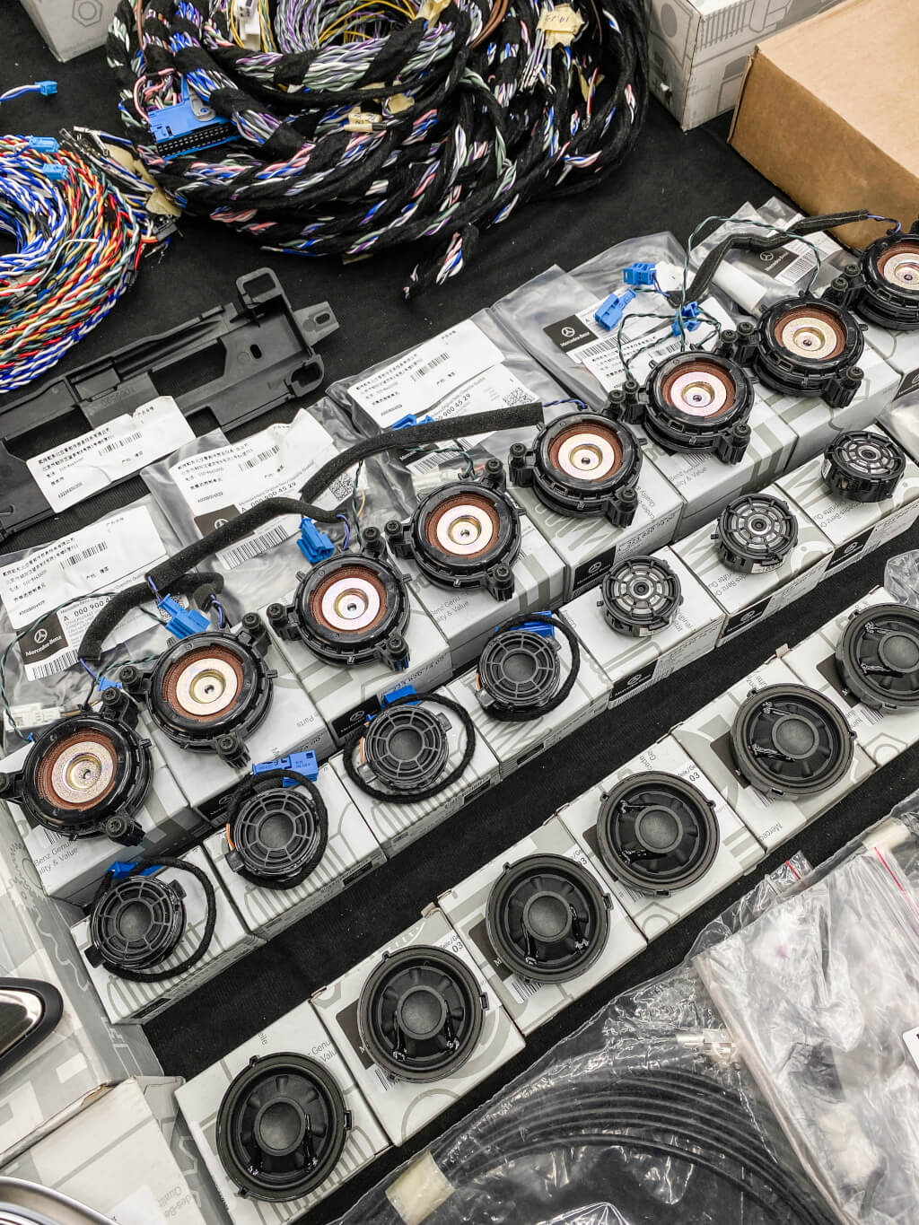 • 扬声器升级:迈巴赫S480原车配备了15个喇叭的小柏林音响系统,而升级后的大柏林音响系统则拥有31个扬声器和8个座椅震荡器。这些扬声器分布在车的各个角落,包括顶棚、车门、仪表台、座椅等位置,为乘客提供全方位的环绕声效果。