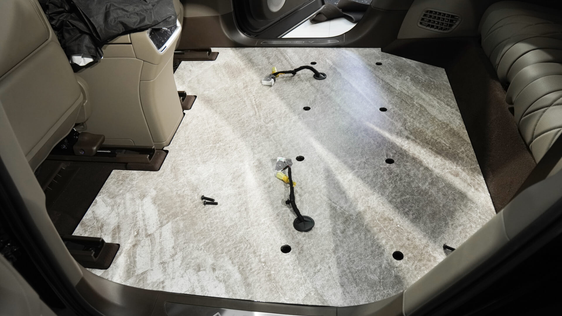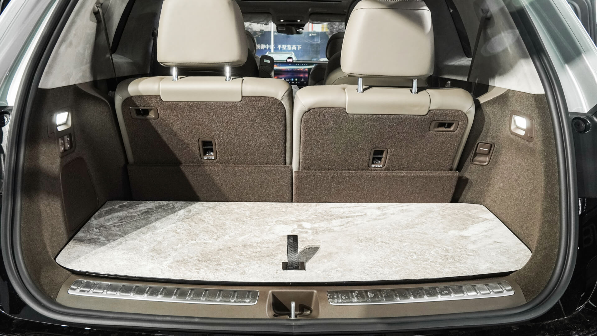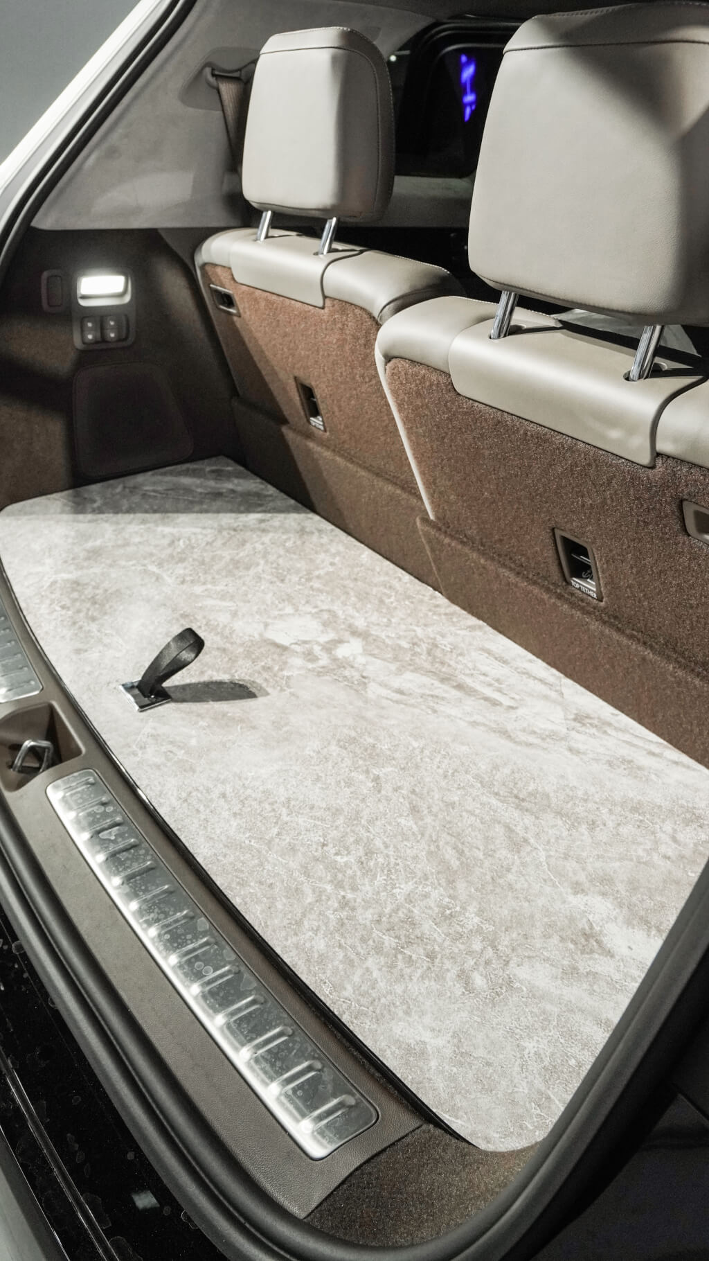 大理石地板一直贯穿到后备箱位置,高级感十足。