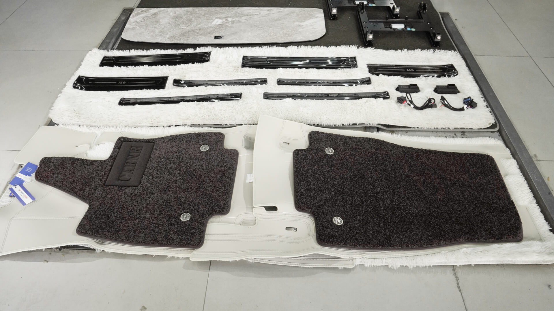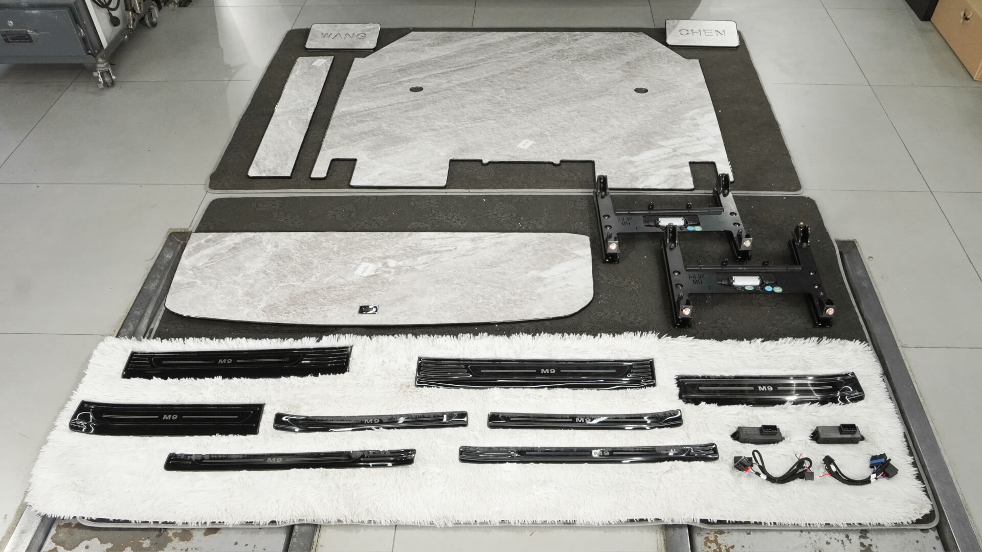 问界M9升级铝地板、航空软包脚垫、门槛条10件套案例