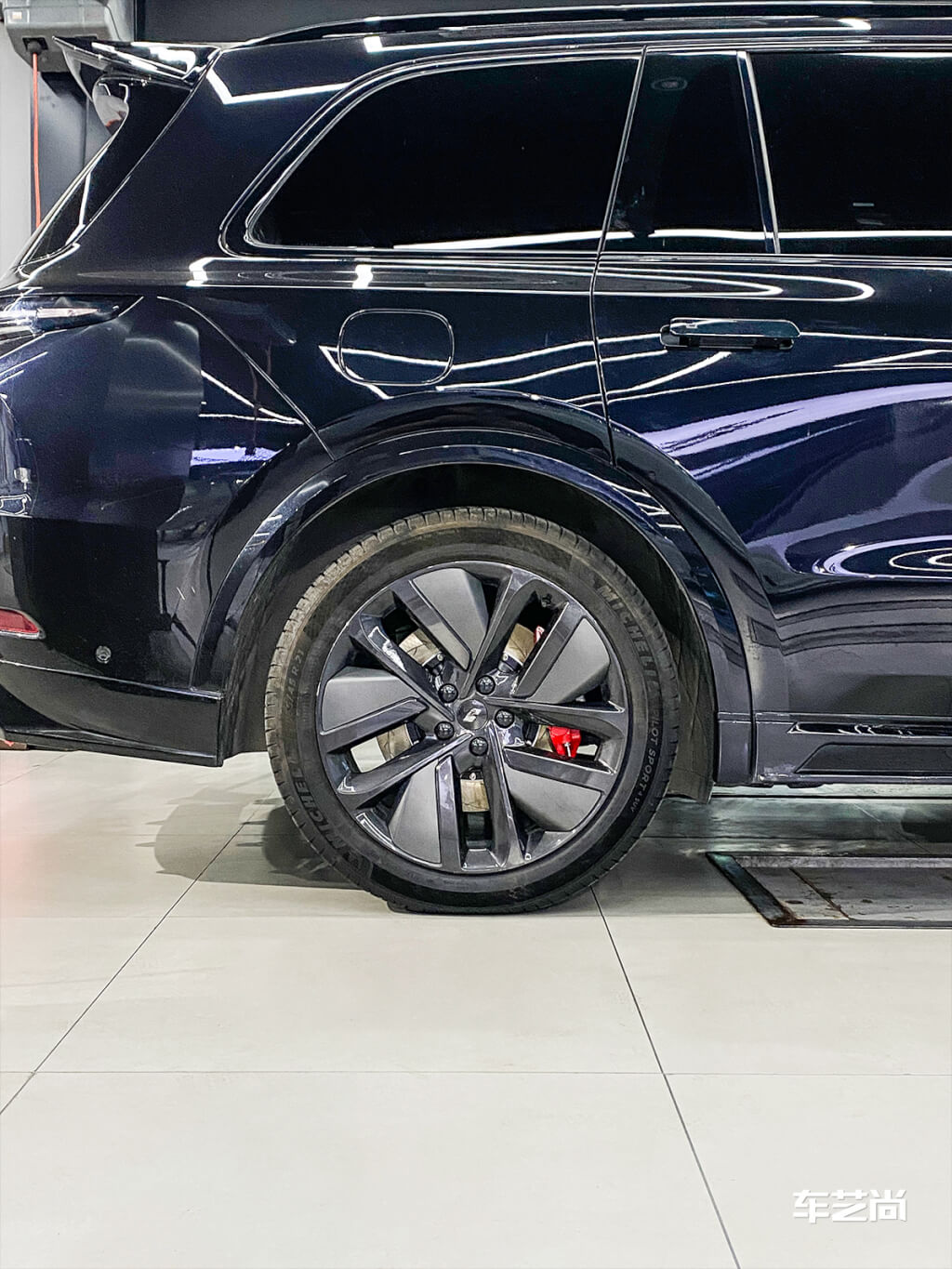其实,理想L9这款车型,除了升级卡钳之外,底盘护板、电动踏板、小桌板、大屏钢化膜、挡泥板