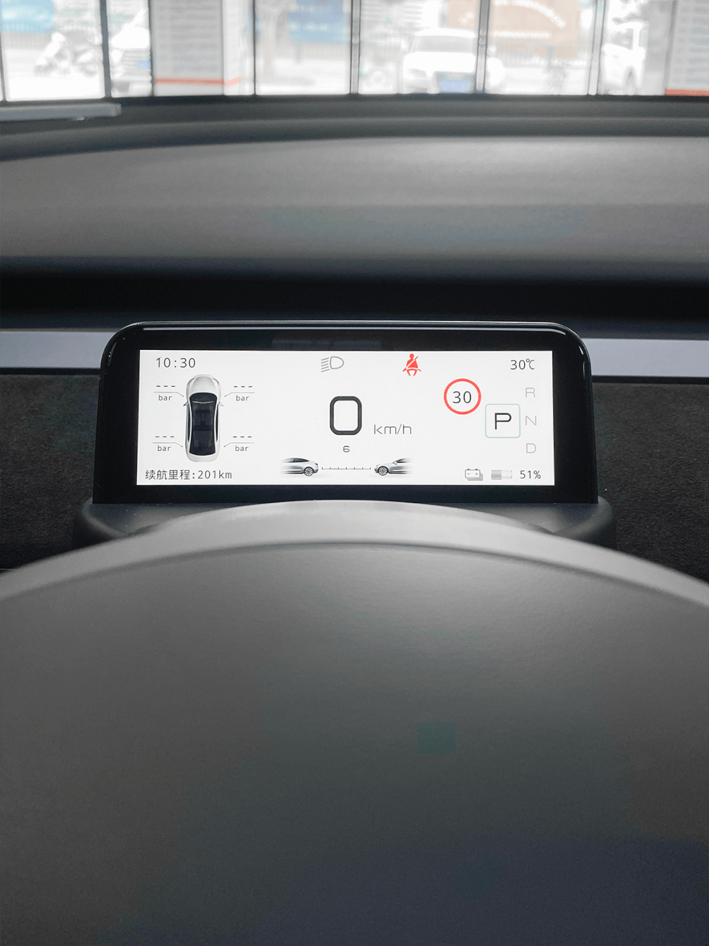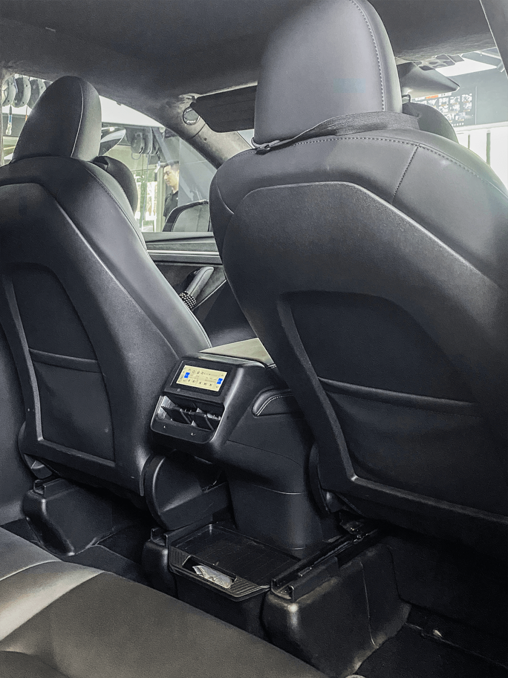 今天这台特斯拉Y,到店升级的项目有:四门电动门拉手、屏幕旋转支架、前排仪表以及后排液晶屏。