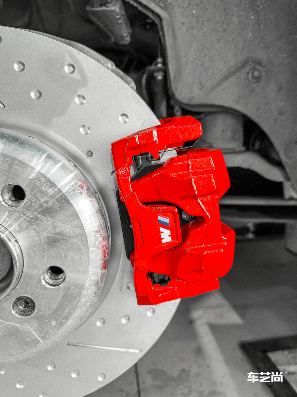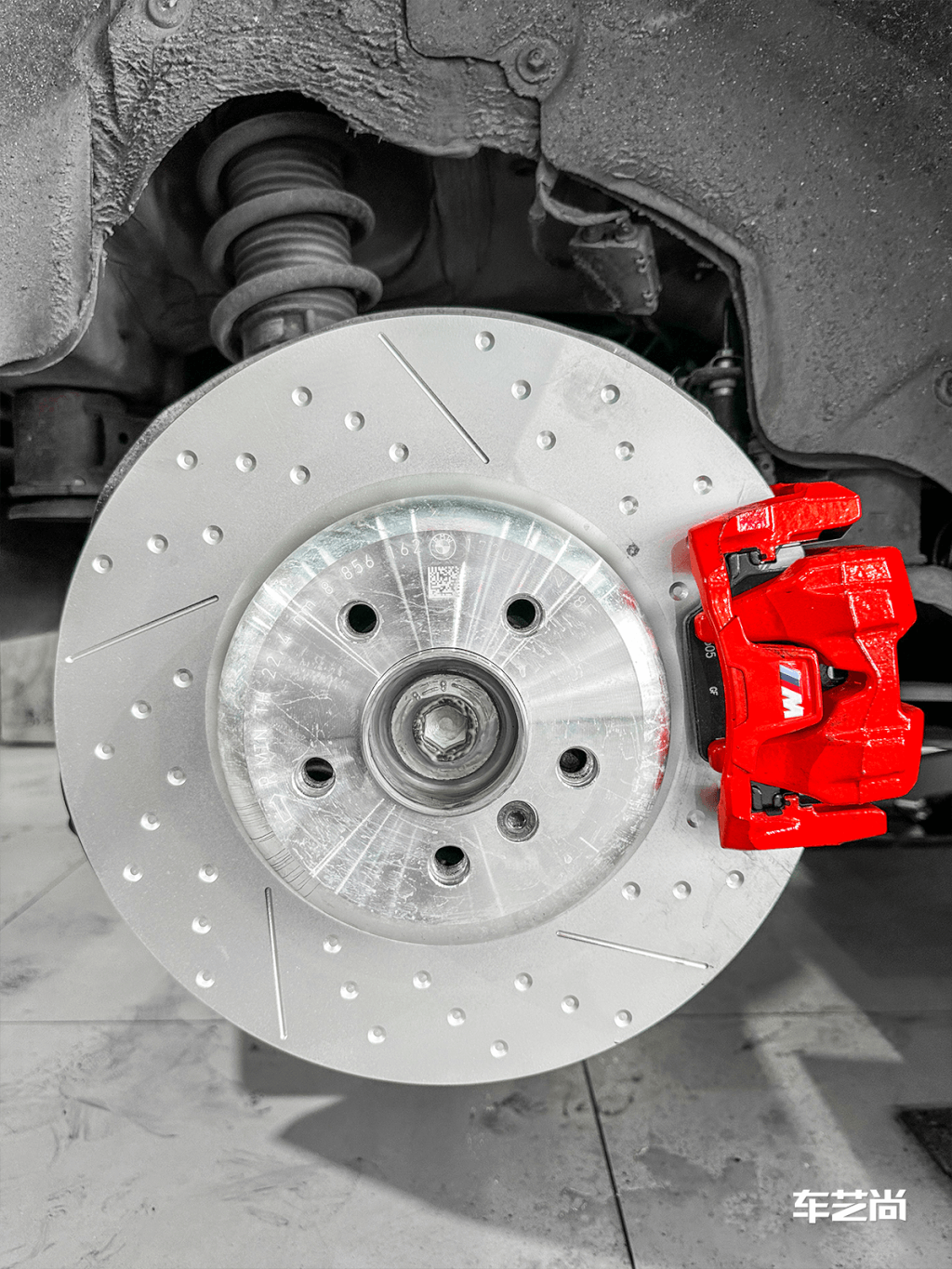 一看大大的刹车盘以及孔位,就很有力量感;