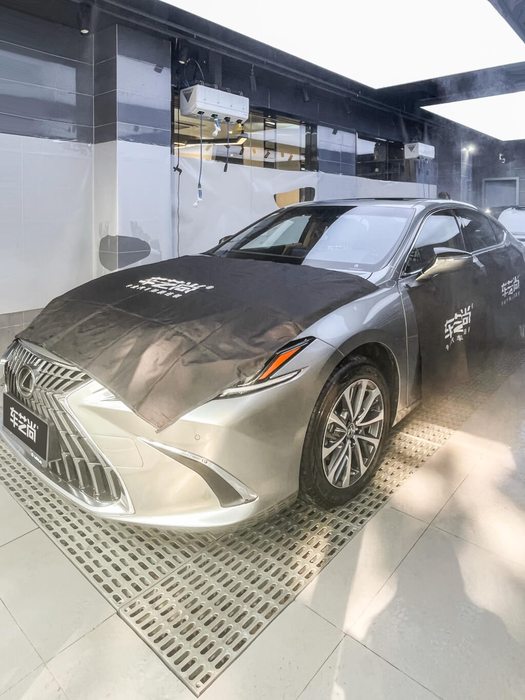 车艺尚御水路店配备有专业照明系统和大型喷淋除尘设备,以及标准的车间疏水系统,可以最大限度降低空气中的悬浮颗粒,减少尘点附着。施工环境干净、明亮、整洁,全程无尘施工,保障施工品质。