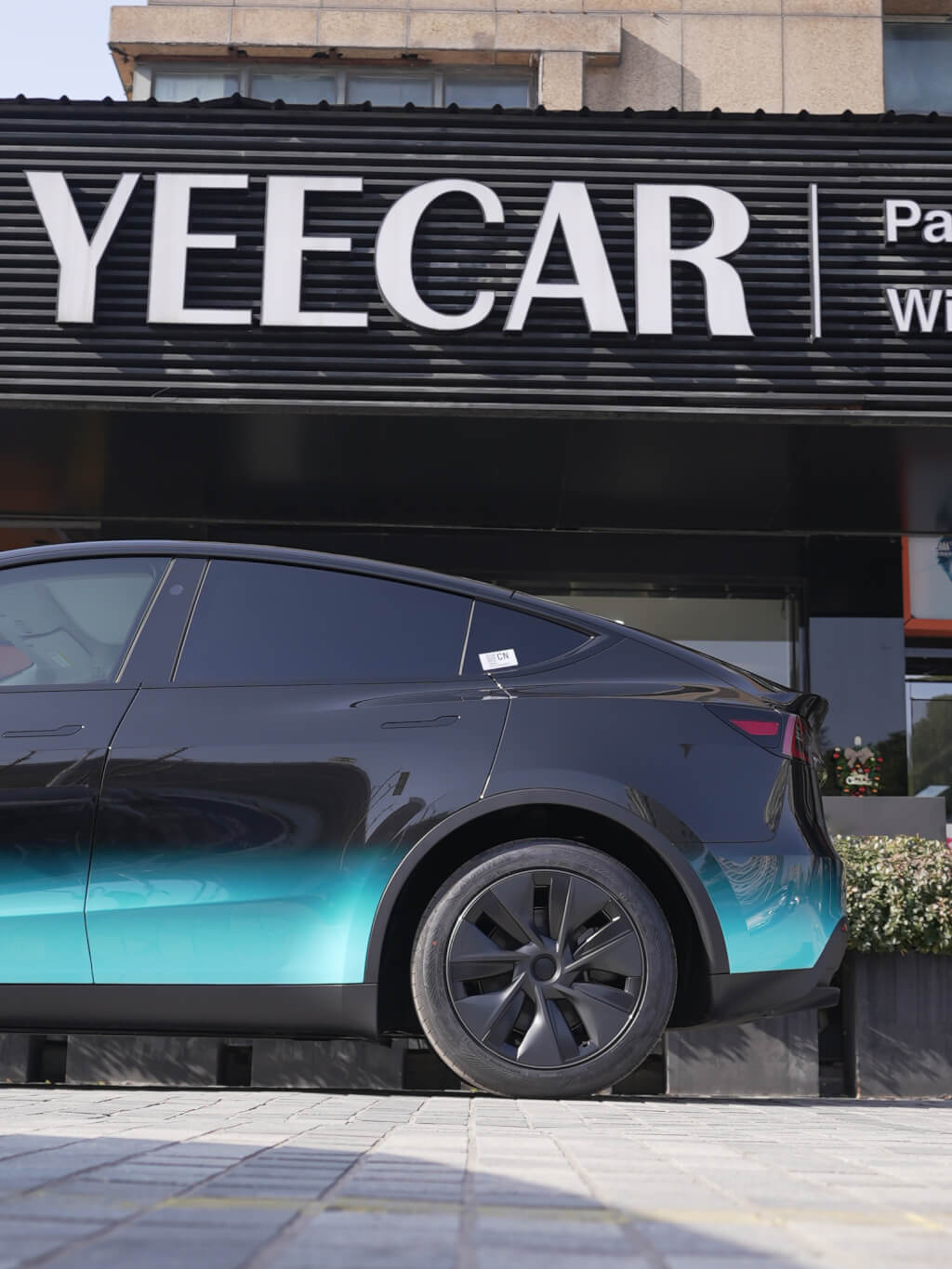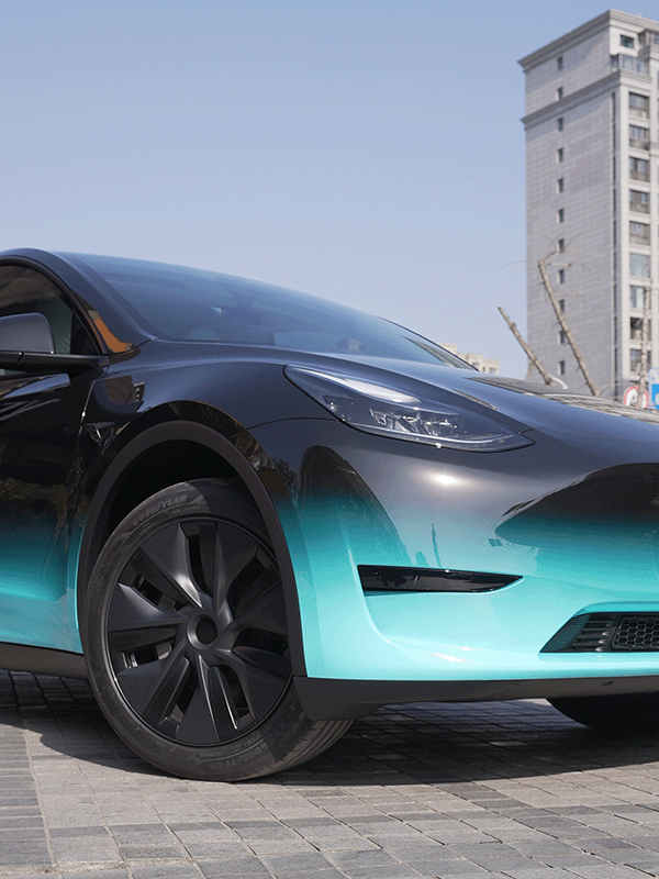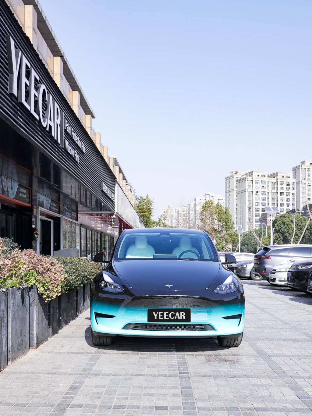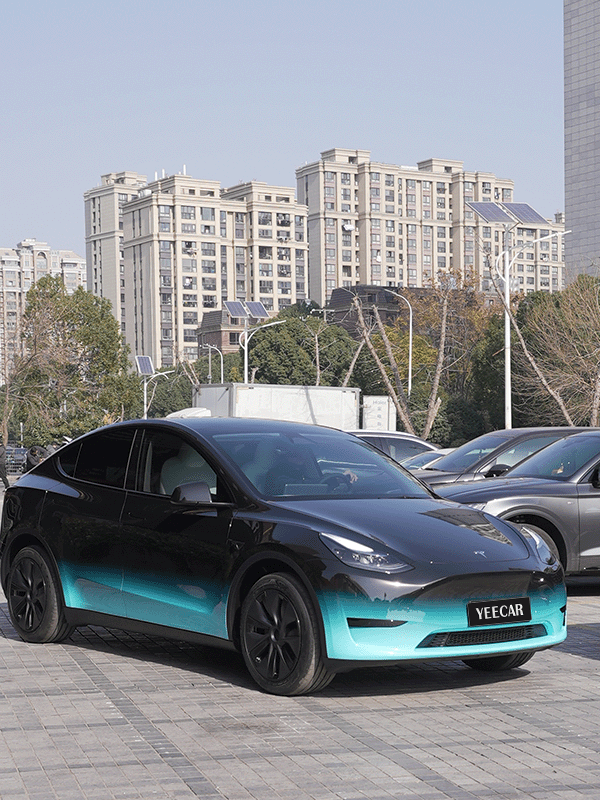 特斯拉Y装贴YEECAR定制渐变色,上下黑篮渐变色调,宛如将深邃神秘的夜空与波澜壮阔的深海巧妙融合,颜色个性又独特,每一寸车漆都氤氲着灵动的气息,开在路上回头率超高!